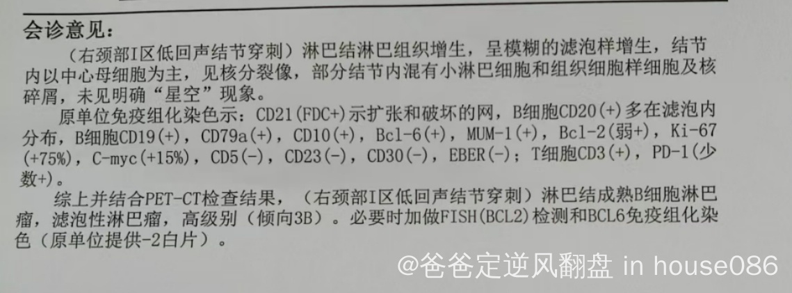 主题10您的身份家属就诊医院北京病理报告滤泡性淋巴瘤3B级目前状态治疗中