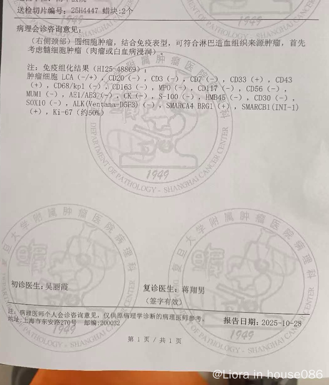 橙色雨丝 发表于 2025-10-29 09:46 不是淋巴瘤,目前考虑髓系肿瘤,血液科就诊。