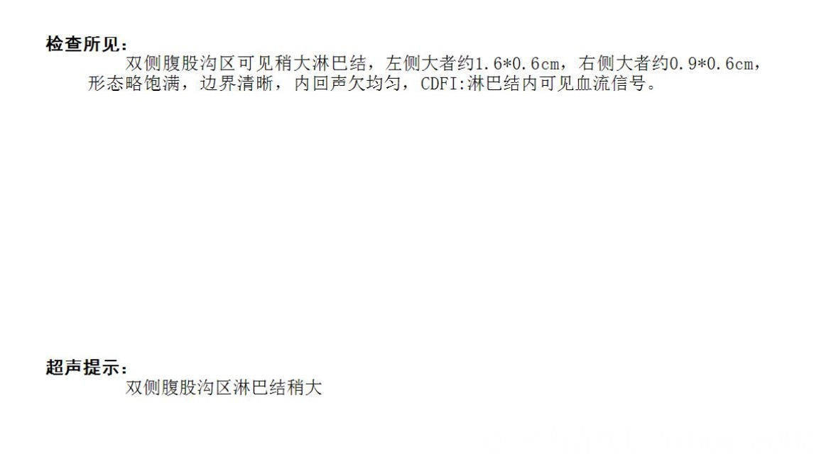 胆战心惊了一个来月,今天我又去复查腹股沟了,并非是我的发病区,只因超声上次有血流信号,我真的是怕了,今天的门诊的主任很好把我这些容易发生浅表淋巴结的部位都检查了下,说没有事,你如果实在不放心我就给你开单子做检查,还告诉我通常我这个短径0.6一般考虑炎性,不过大家也可以仅供参考哈。