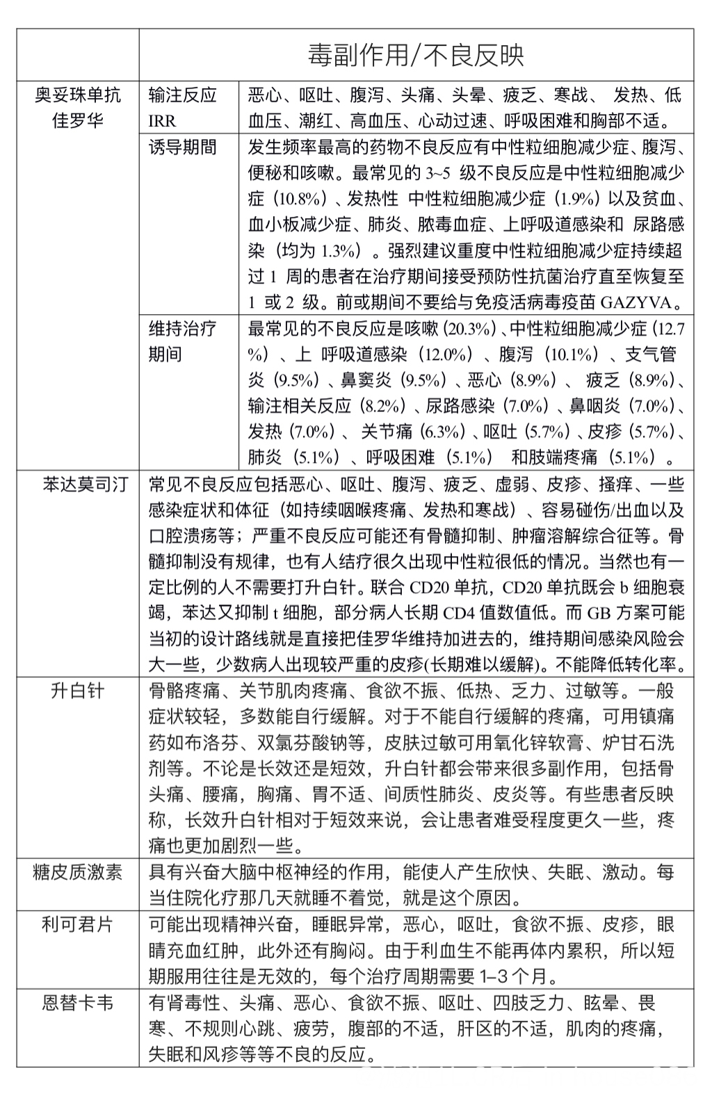 在治療前自己先在网上下载各药的使用說明書,上面都有預防不良反映的詳細措施。
