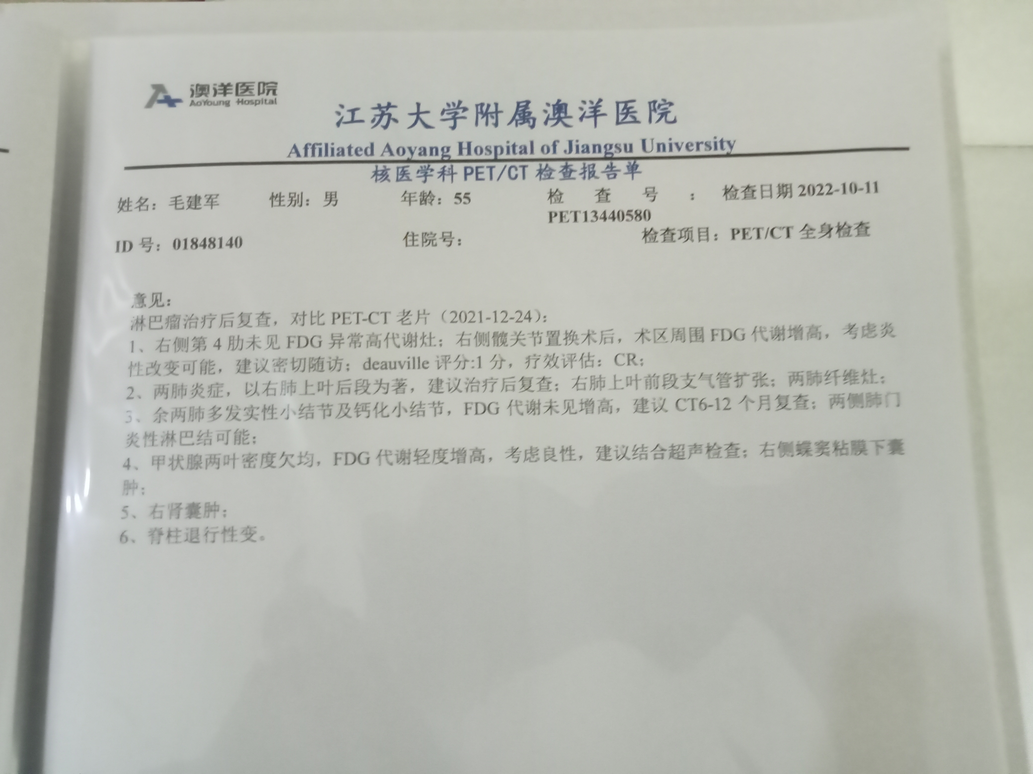 病理报告弥漫大b细胞(生发中心外活化b细胞)