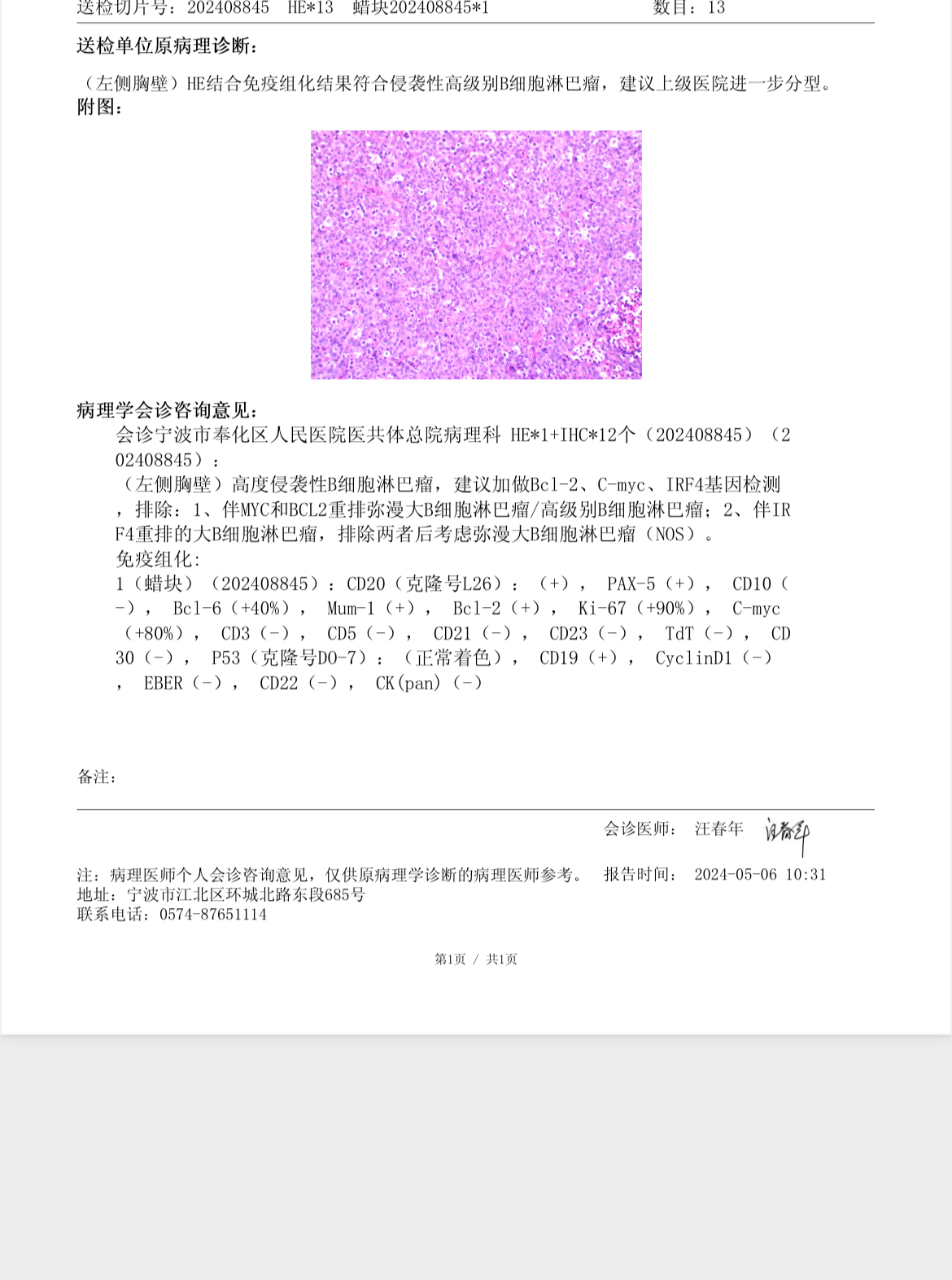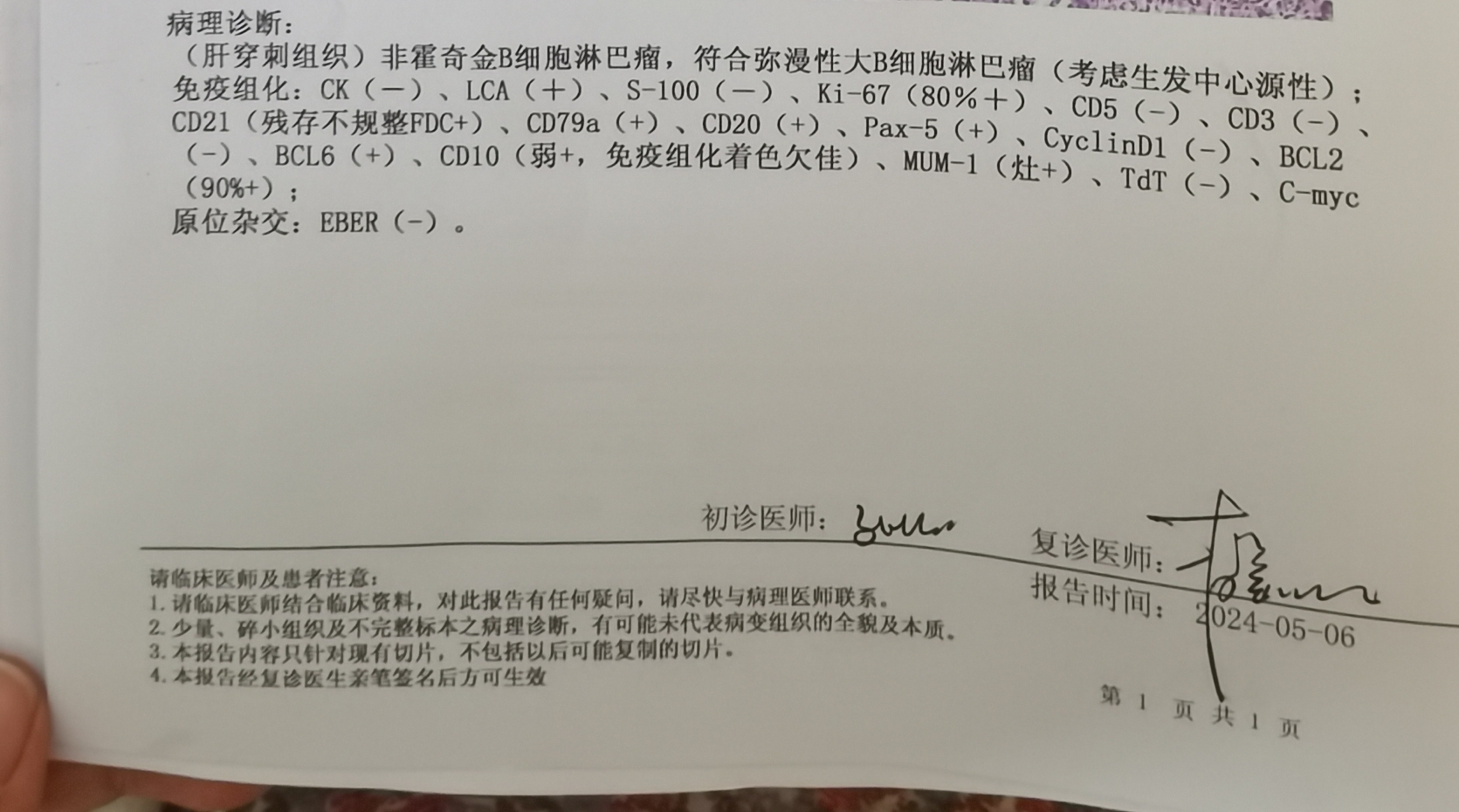 你这cmyc,bcl2,bcl6都是阳性,很可能是双打击或者高级别淋巴瘤,rchop可能不够的
