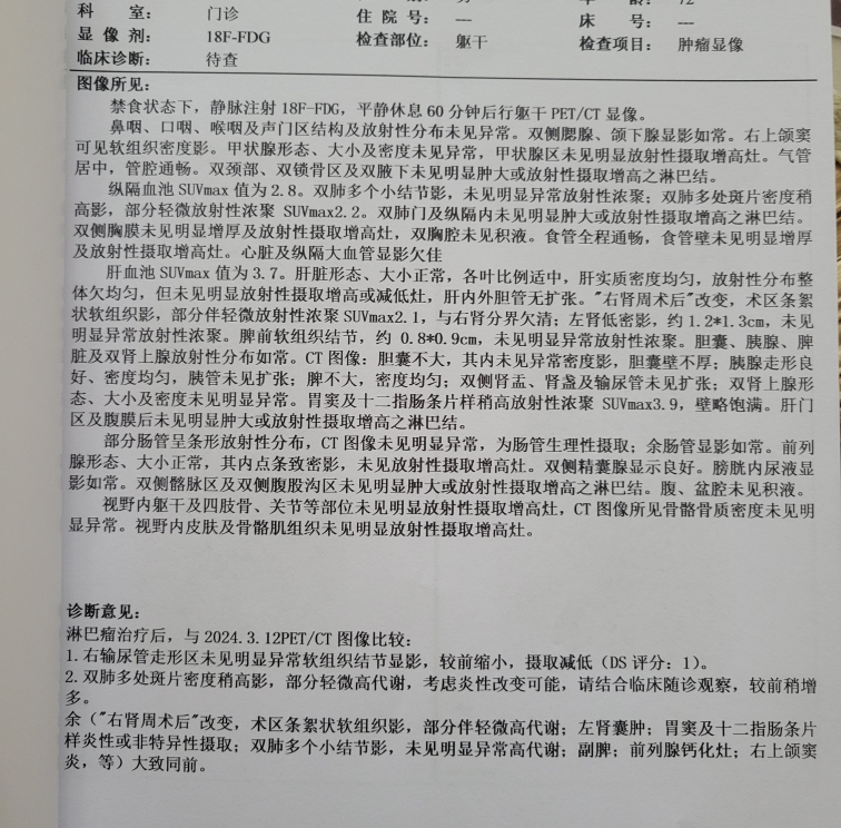 奇异恩典~ 发表于 2024-05-28 16:43 咱们一样,三次化疗结束。明天想做个petct评估下。老爷子72了
