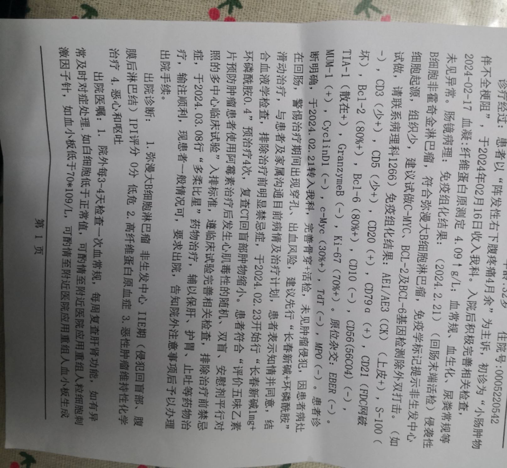非霍奇金淋巴瘤,非生发中心,没有表达,没有打击,低危,ipi评分0分。