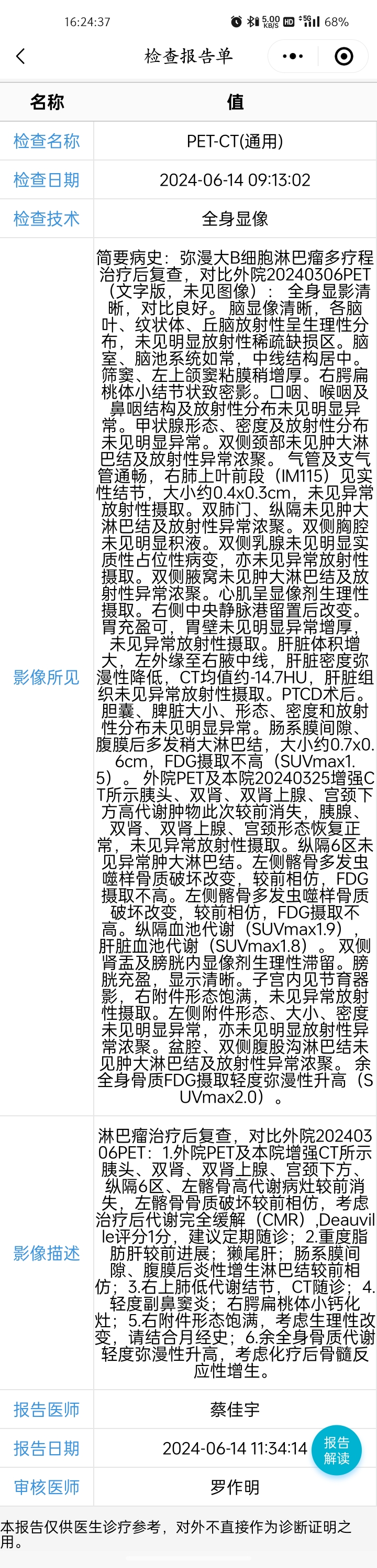 弥漫大B细胞淋巴瘤(non-GCB,IVA期IPI3分)四疗后评估