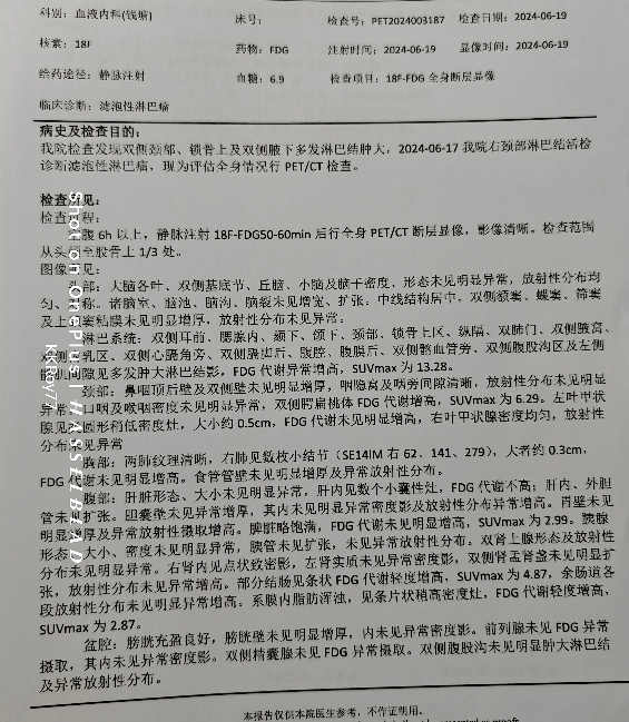确诊滤泡,各位大神们,帮忙看一下, petct 出来了。 |