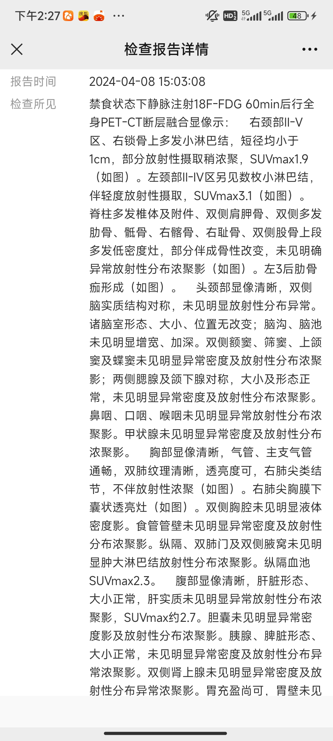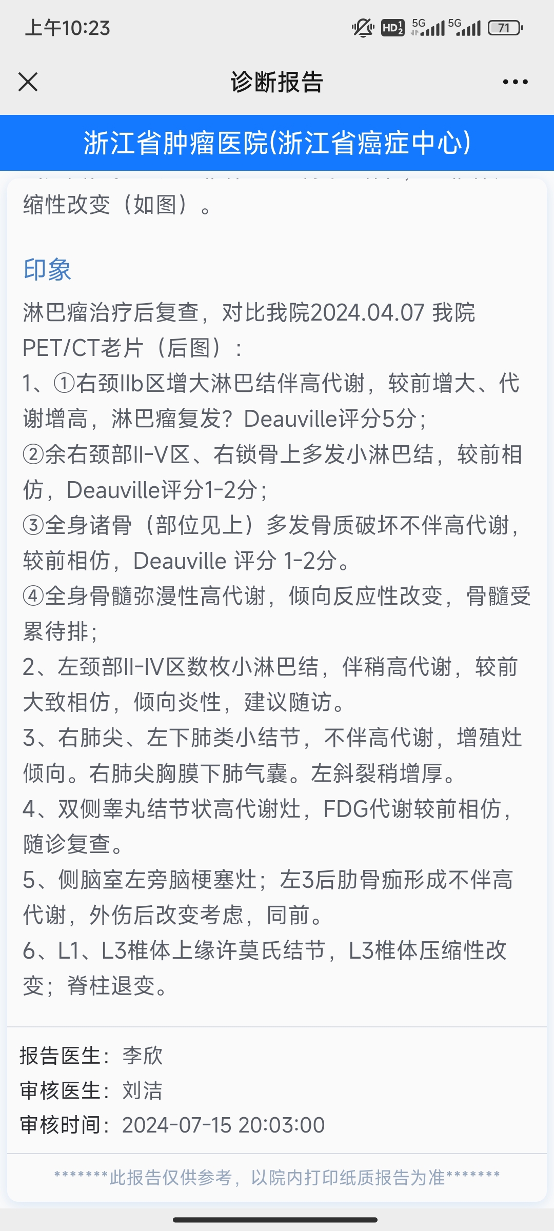 加油阿妈子 发表于 2024-07-16 20:29 就依据petct 就确定复发了 petct只是影像而已啊 还有没有其他证据 要重新做病理