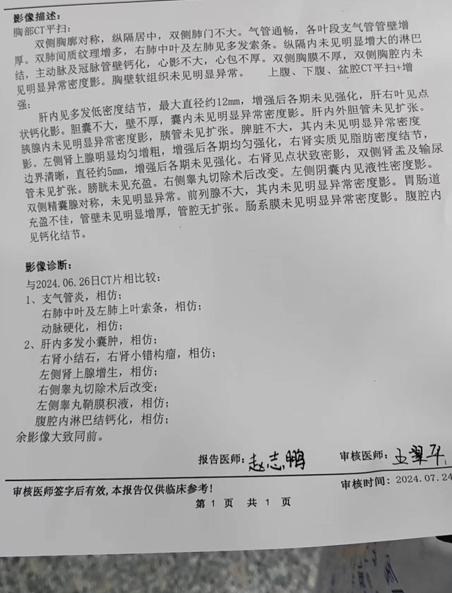 加强CT的结果,我看有淋巴结钙化和肝的结节,这个咋样啊?
