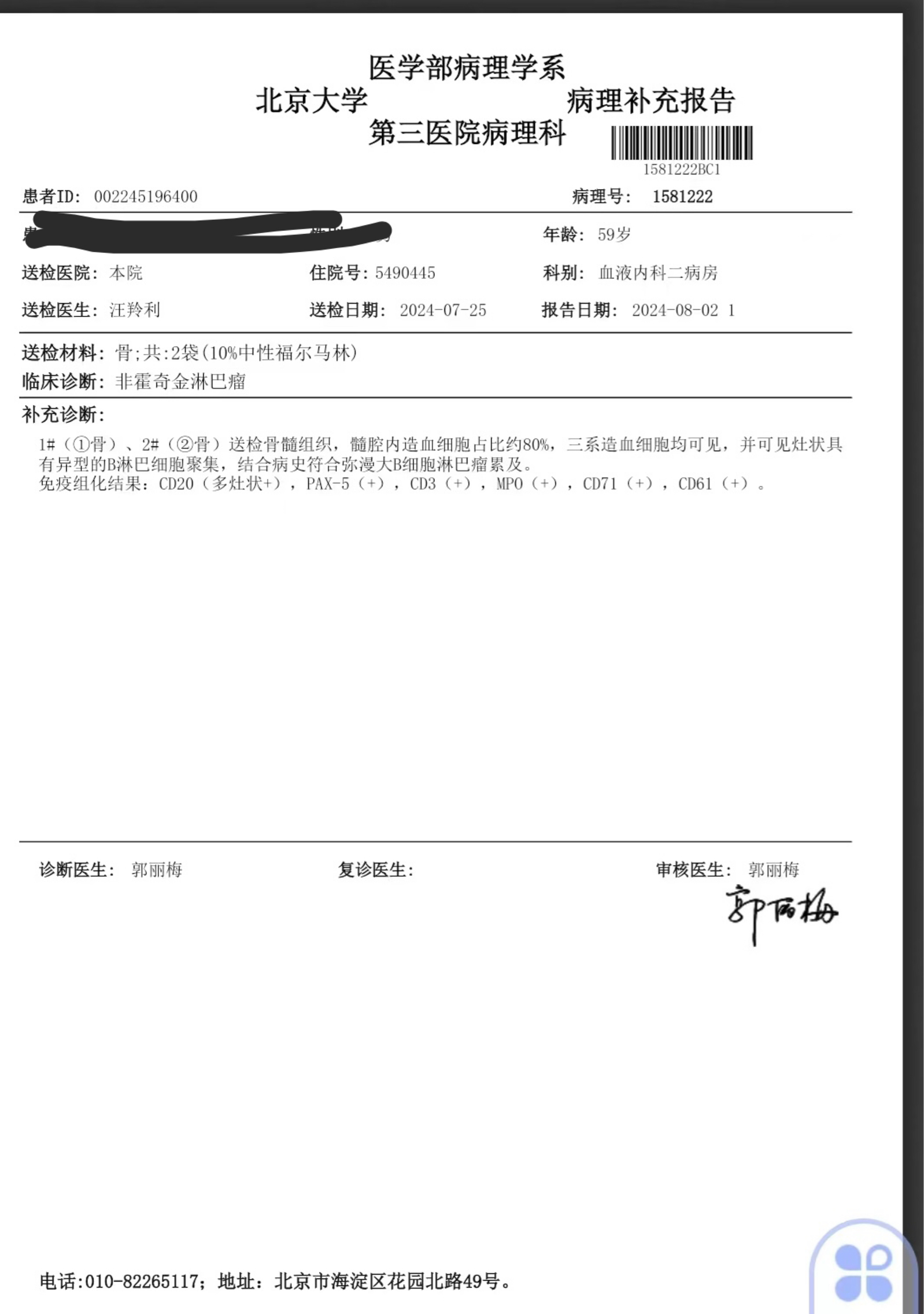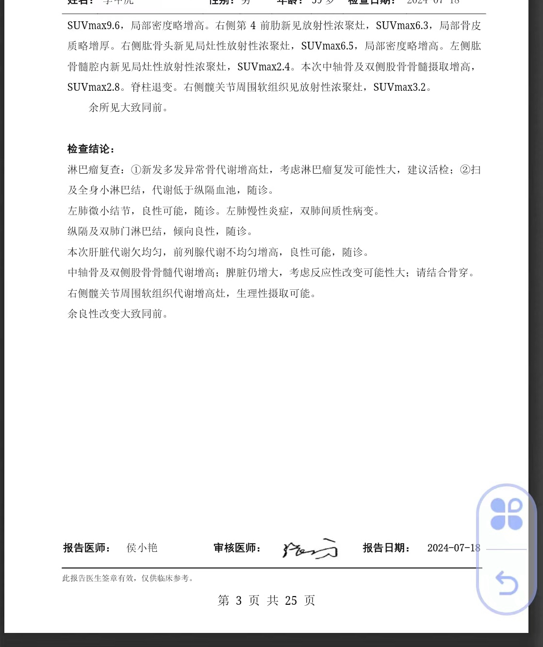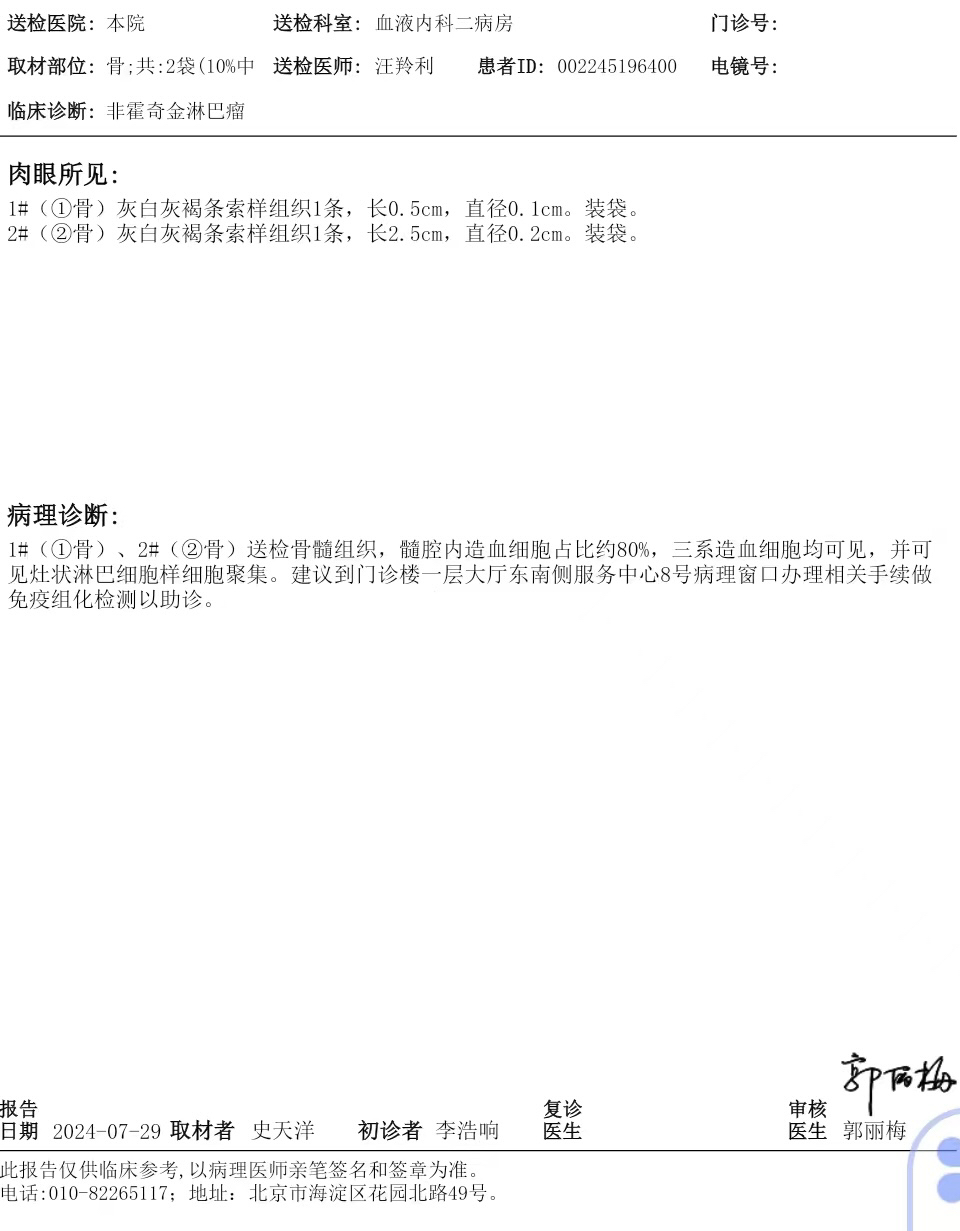 结疗九个月复查,骨代谢增高,骨髓穿刺活检病理,累及骨髓了