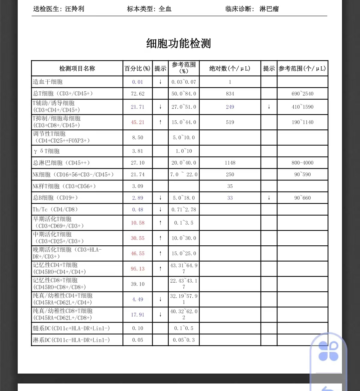 童真T细胞的比例有点低,大致相当于三线治疗的患者,尽早考虑CAR-T吧。