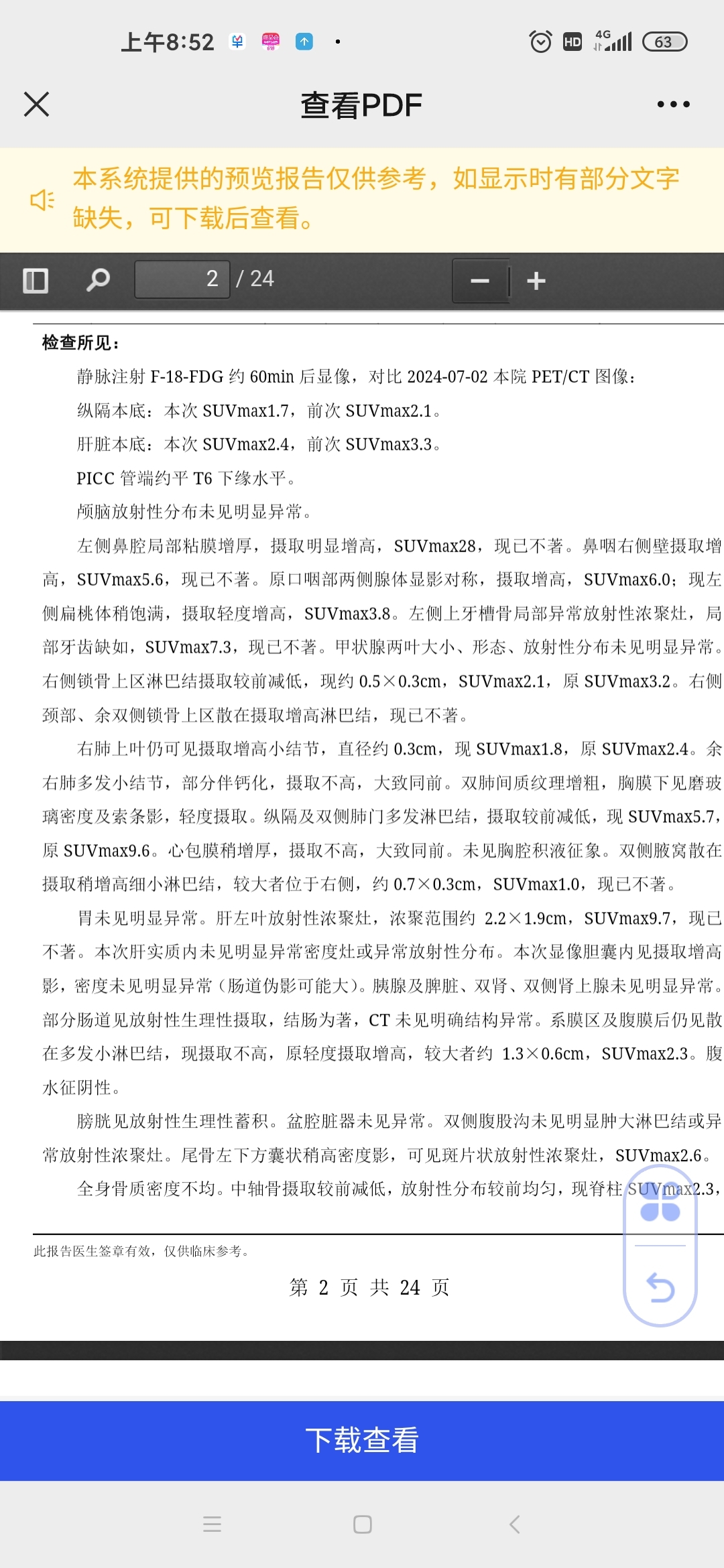 就是纠结在这。以下是今年5月6日,刚发现复发时的pet,结果。