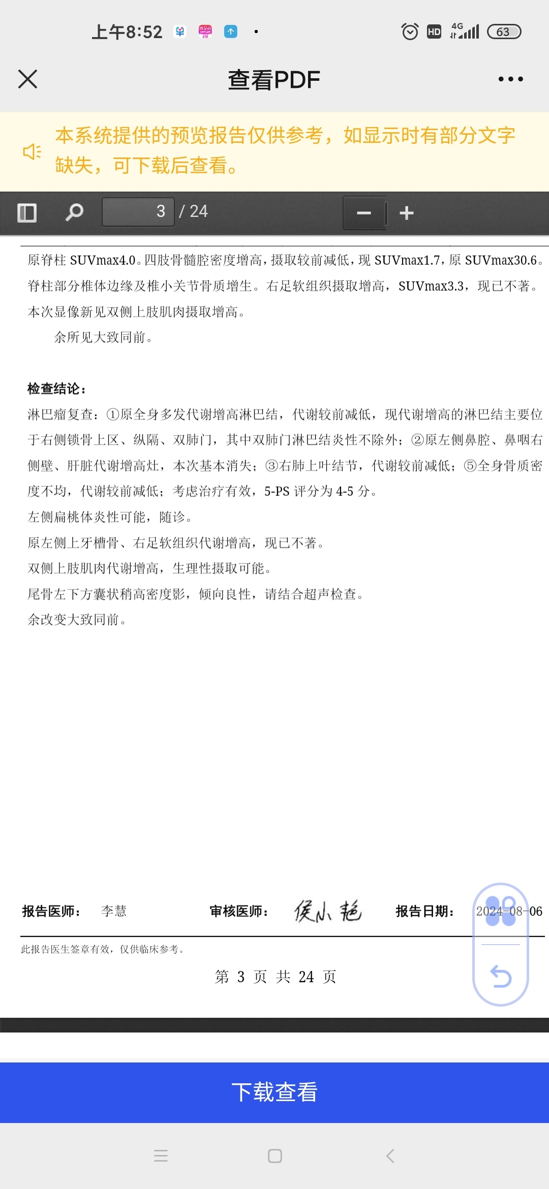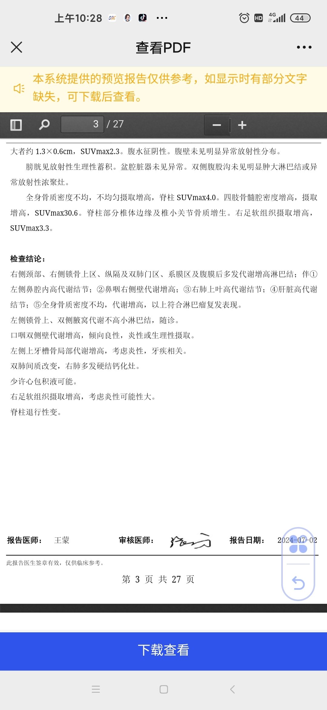 医生有和pet检查组资深老师探讨,说评分实际应该可以给三分。cart实验组和院方给的意见是留组继续随访观察。我不知道我妈这种结果接下来该怎样做?很怕病情会有变化错失最佳的治疗机会。恳请各位有经验的大神帮忙给看看。@洪飞 @橙色雨丝