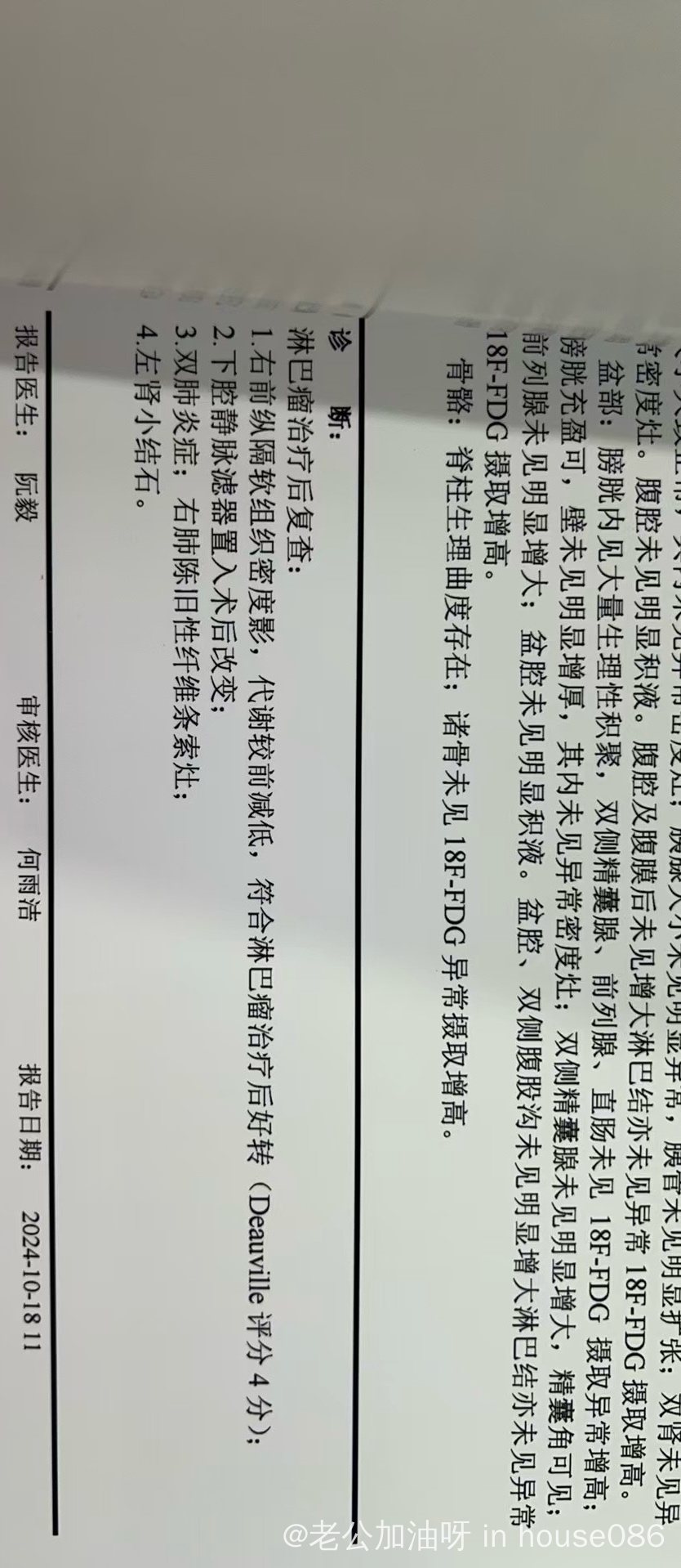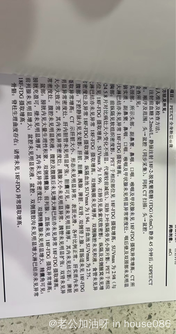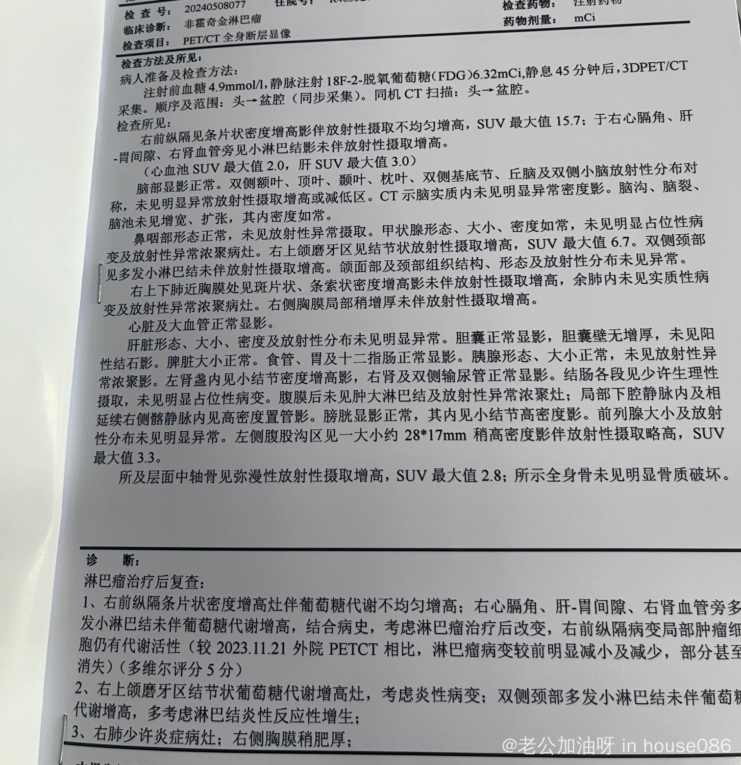 6月18号移植出院,放疗11次。移植前纵隔还有活性。