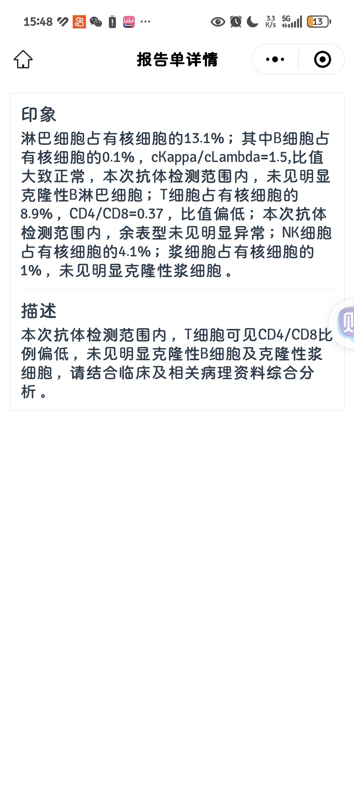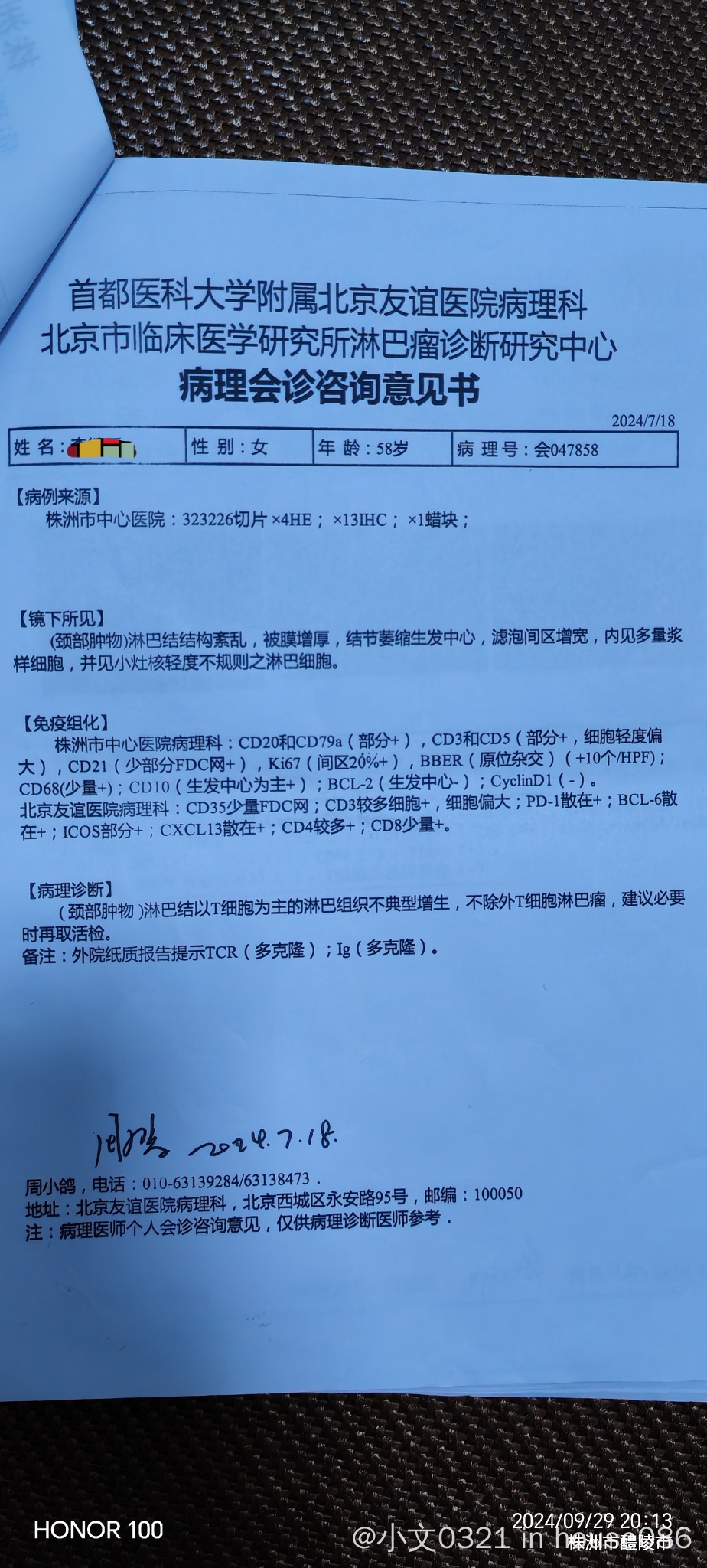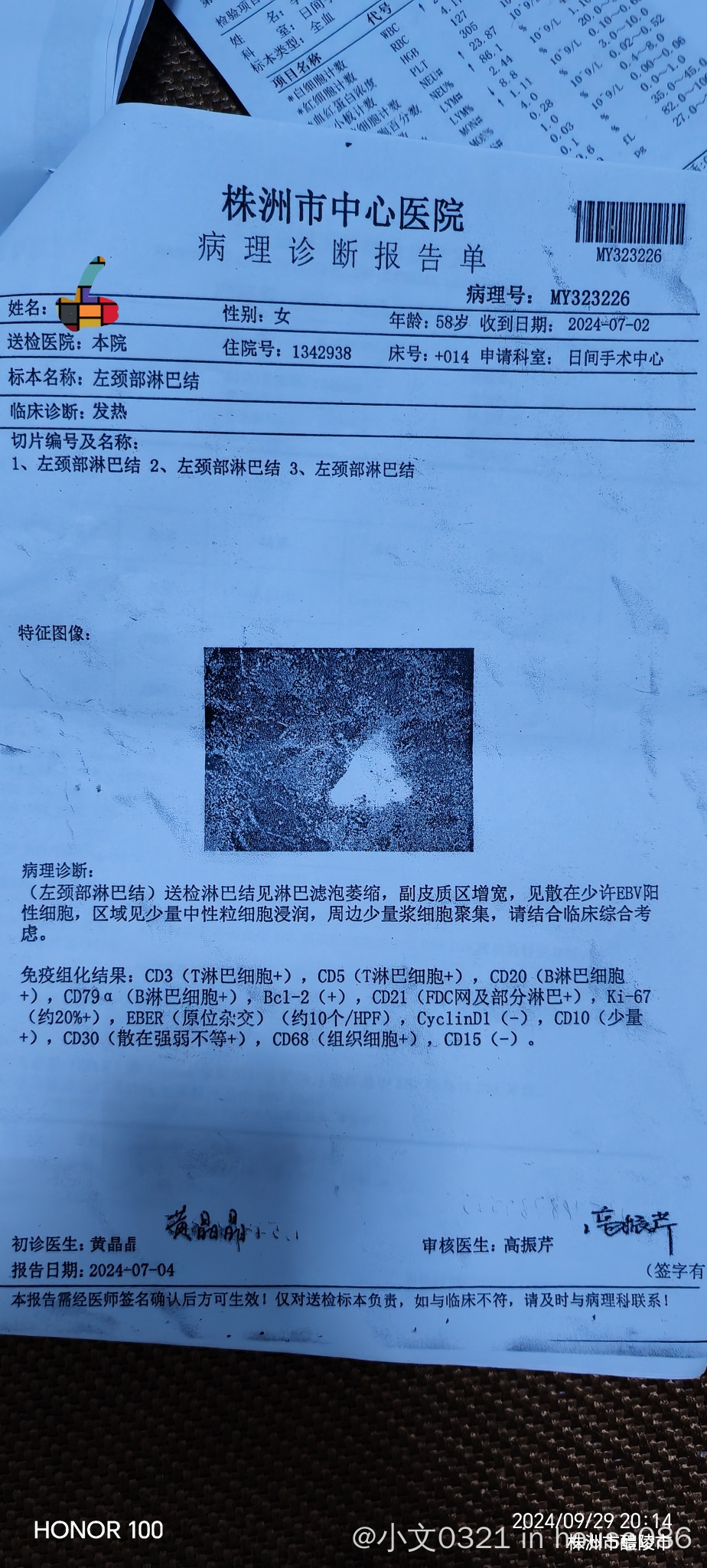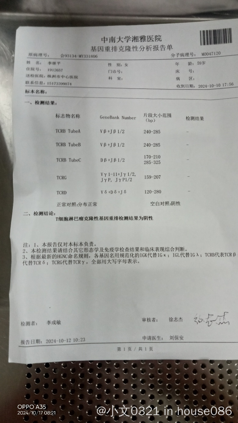 但是湘雅血液科那边说是T细胞淋巴瘤就没后续了,也没做分型什么的直接开始做的化疗