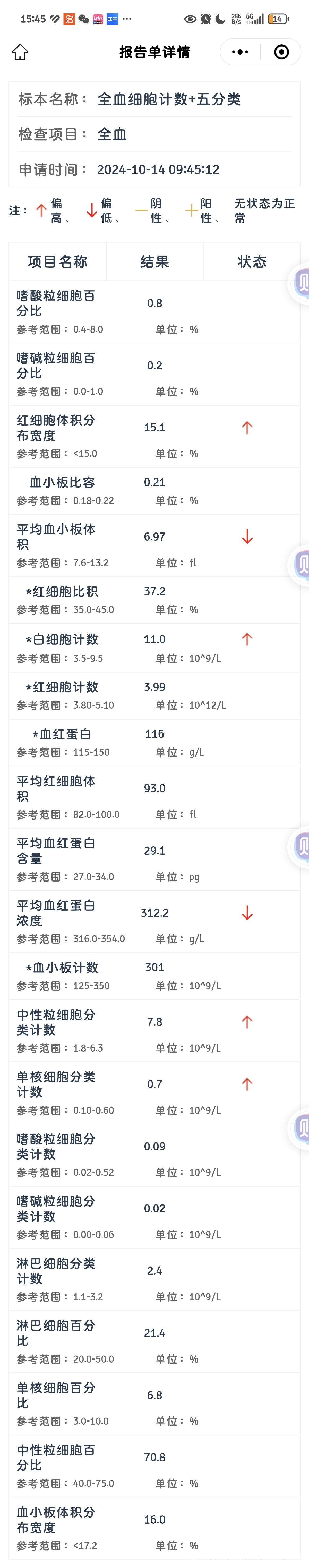@橙色雨丝 11月23号住院开始做第二期化疗28号结束 28号打了一针长效升白针。 回来没几天  11月30号全身疼,胸口背疼,12月1号去当地做了检查说是心肌缺血  1号3号4号做了血常规   白细胞中性粒细胞血小板快速下降  ,这是什么原因啊,体温正常,严重感染吗?这边医生说可能是二期化疗药下重了,现在数值那么低是不是有出血可能,该怎么逆转啊
