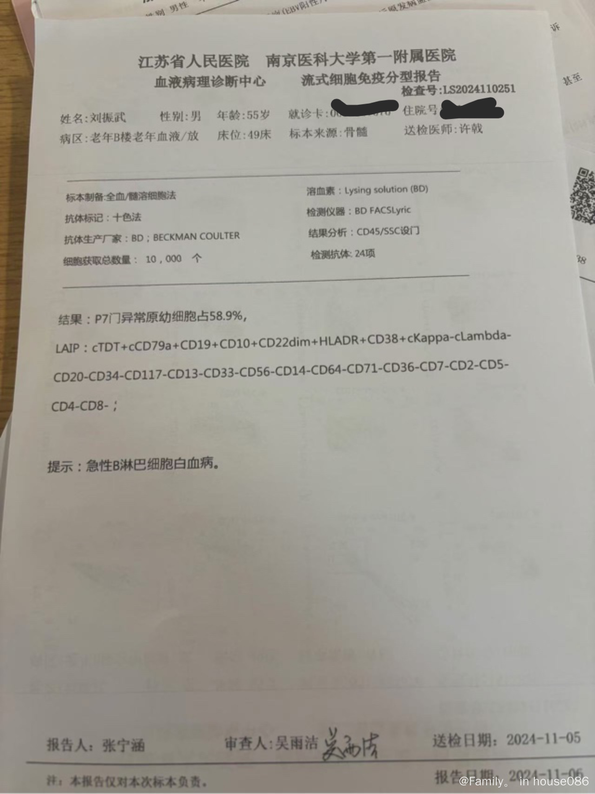 我父亲是急性淋巴瘤白血病吗? |