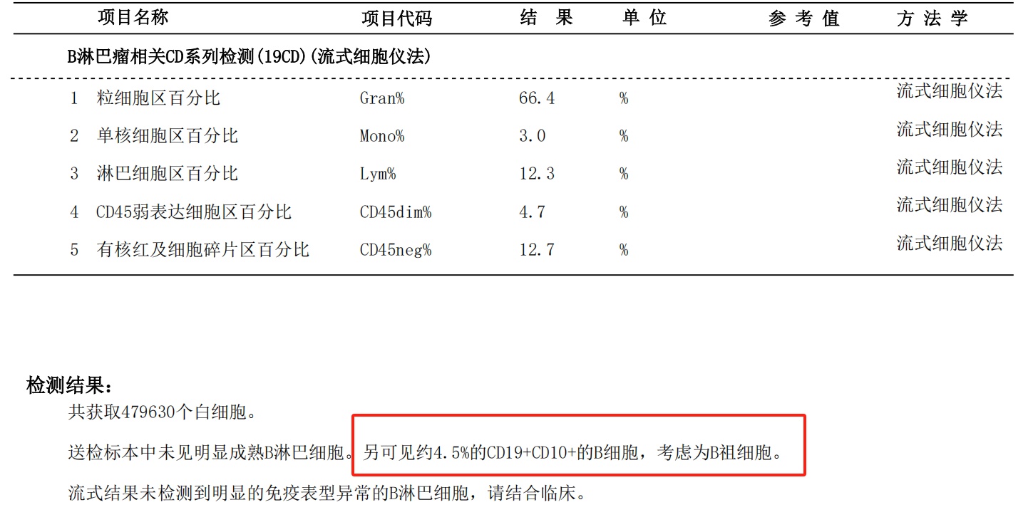 有老师帮忙看一下这个骨穿结果的4.5%  B祖细胞是什么意思吗?