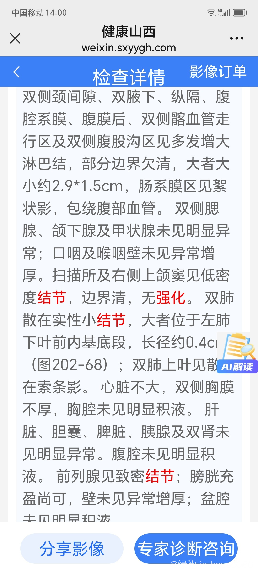 anl 发表于 2024-12-06 20:15 它也没报告那些结节有没有强化。如果有强化,还是做一下pet ct吧 初步判断是不是炎症
