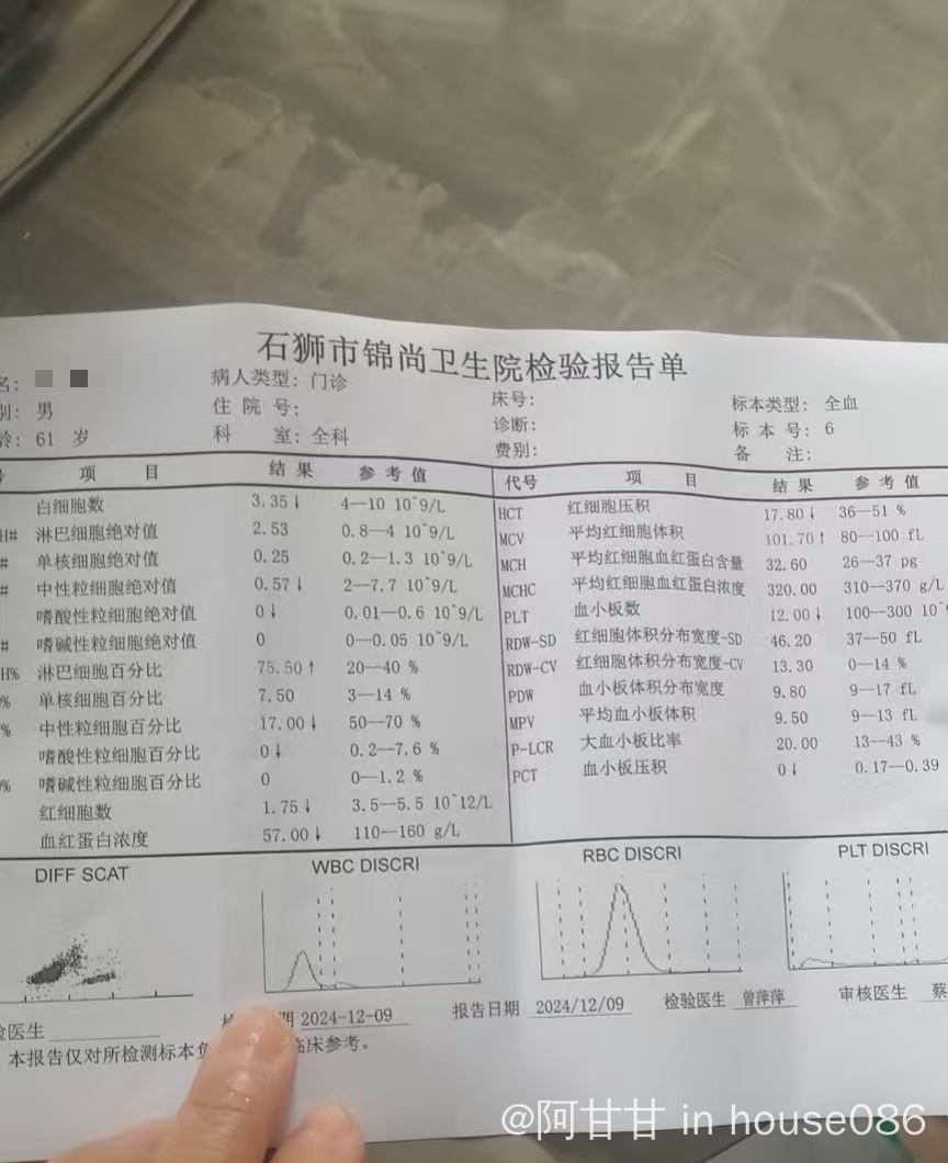 求助,我爸确诊原发中枢淋巴瘤,血指标一直涨不上去