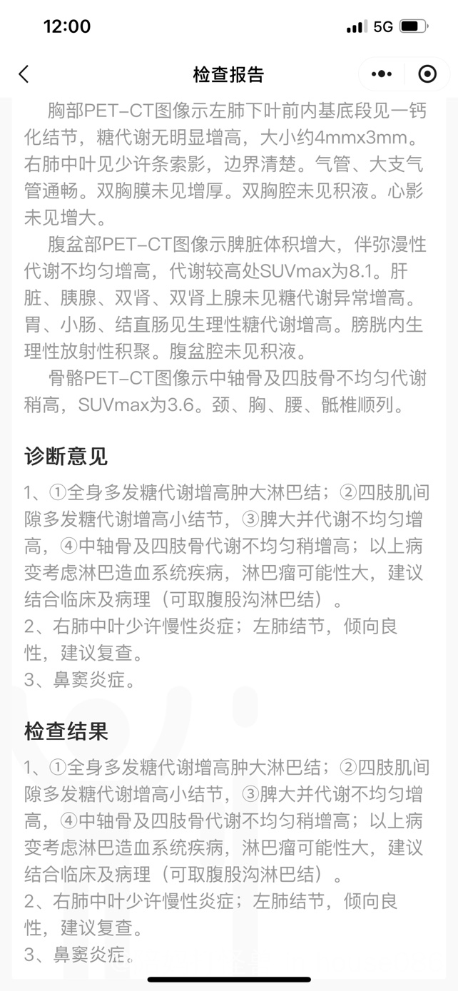 渡过 发表于 2024-12-19 16:47 我妈妈今天检查结果还是不能确诊,让我们去协和医院看看,也不能确定是淋巴瘤,哎