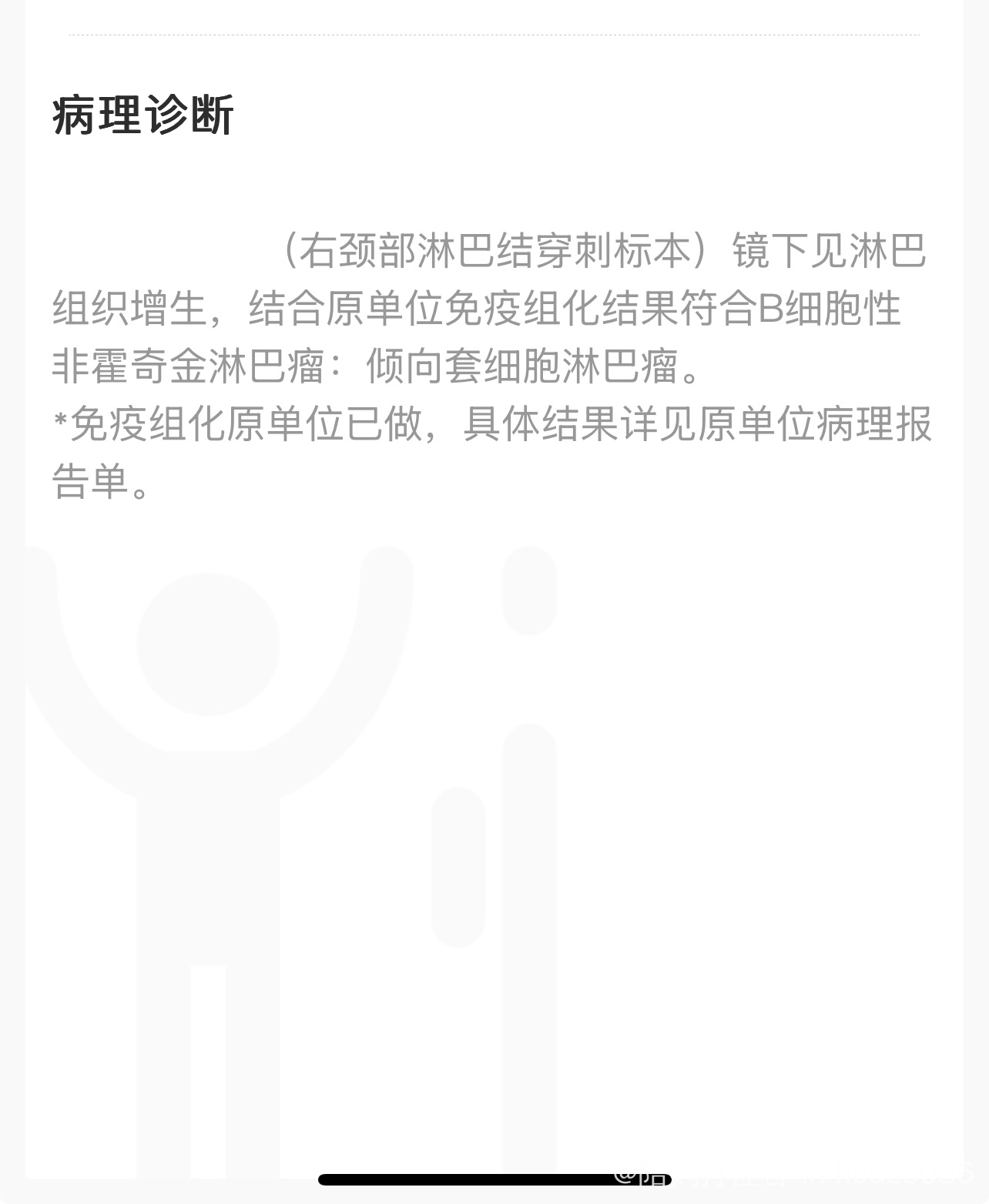 好运不会迟到 发表于 2024-12-18 15:43 湘雅,就问一个最简单的,你们的病理报告有没有分型?有没有写经典型还是母细胞型还是多形性?