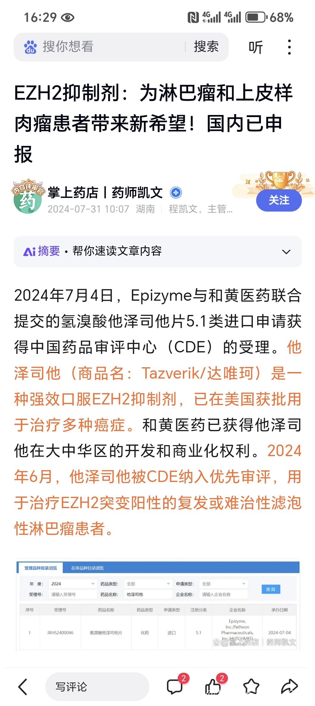 想问一下有没有病友人了解过临床试验新药EZH-1/2的?求 ...