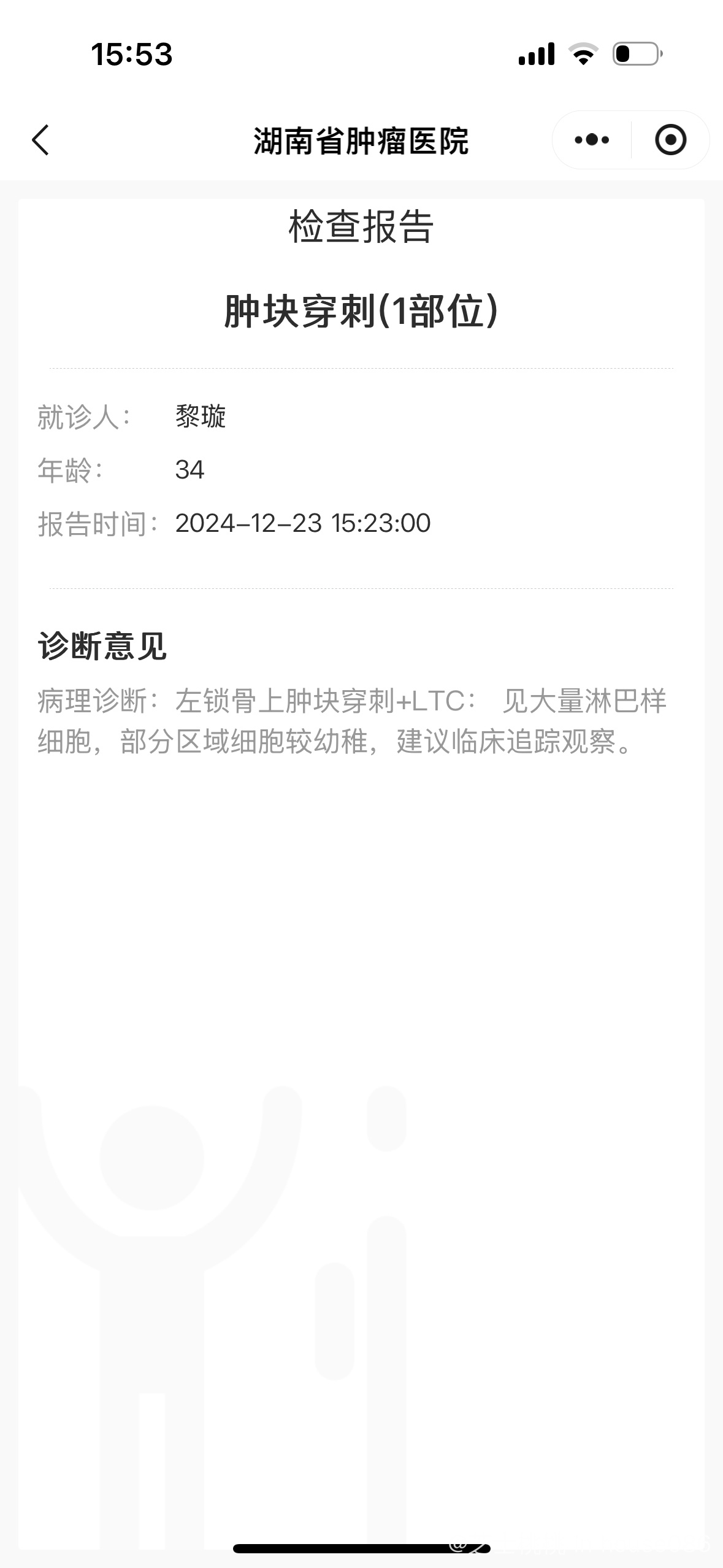 做了穿刺,显示淋巴细胞和幼稚细胞,医生说,是淋巴瘤,昨天做了活检,要5个工作日出结果,昨天看了切下来的,是白白的一团,医生说,不是什么好东西