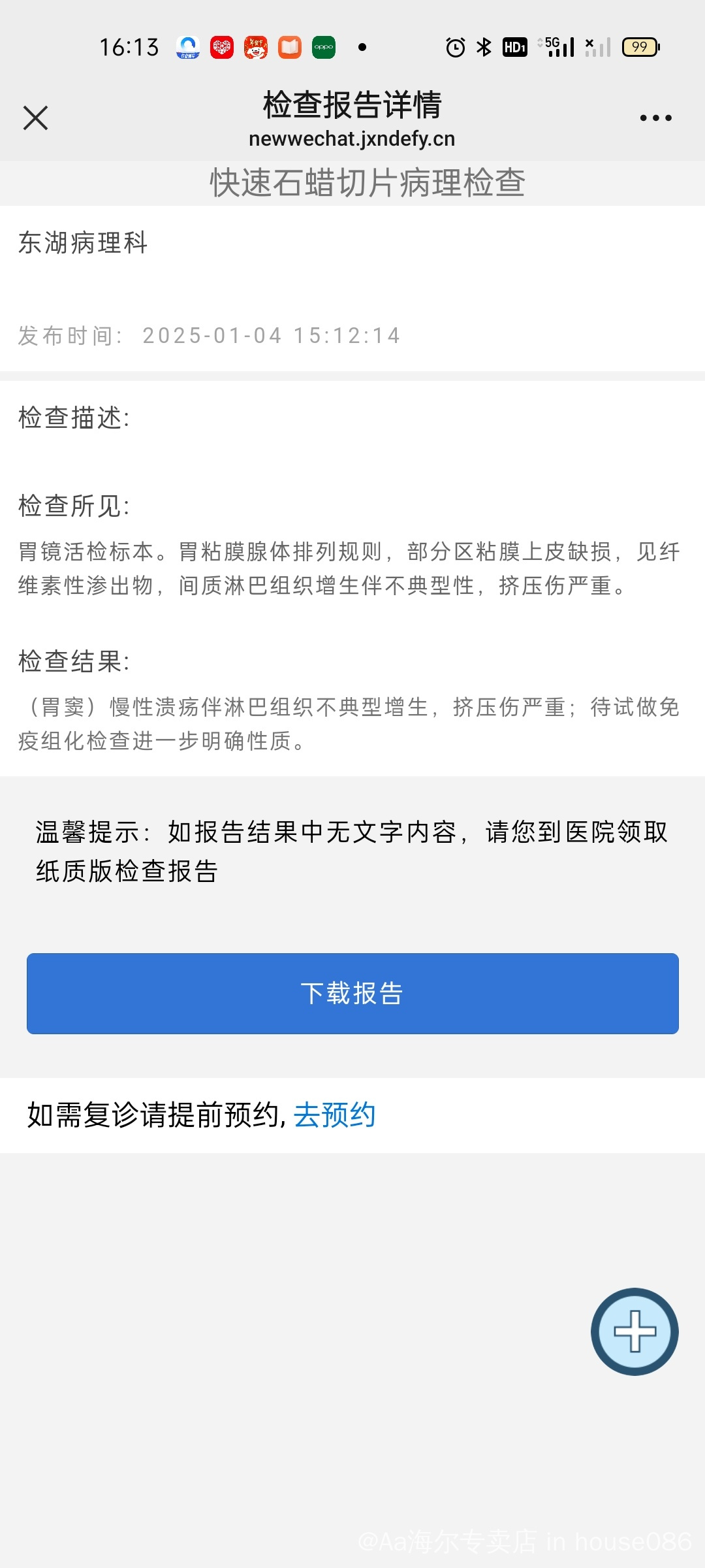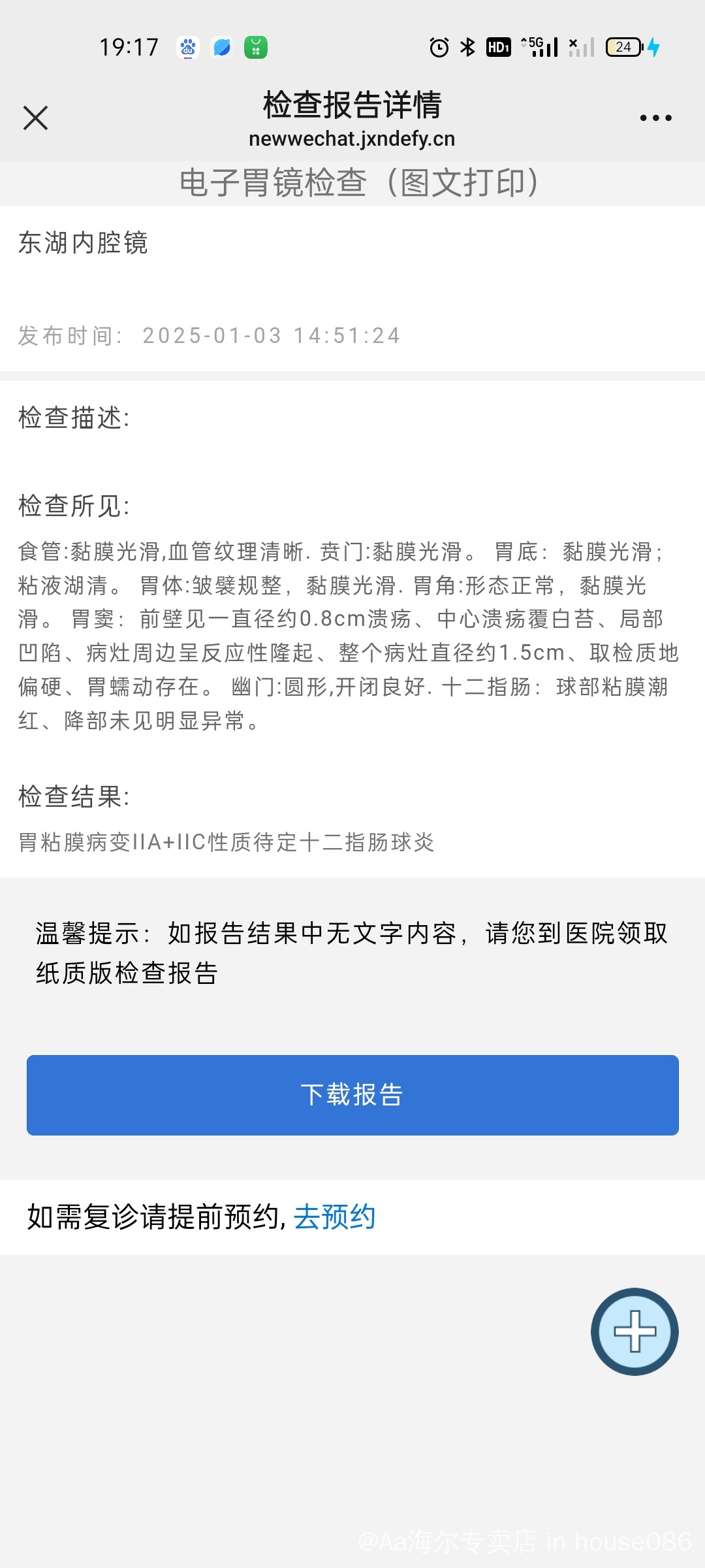 Aa海尔专卖店 发表于 2025-01-07 14:55 我这个做了两次活检,应该是病灶太小,活检组织取了两次,都太少了,做不了fish,然后做了腹部增强ct,胃肠镜,胃癌标志物,然后血项,这些都正常,就是胃窦1.2cm溃疡,这个大概率是很早的吗?