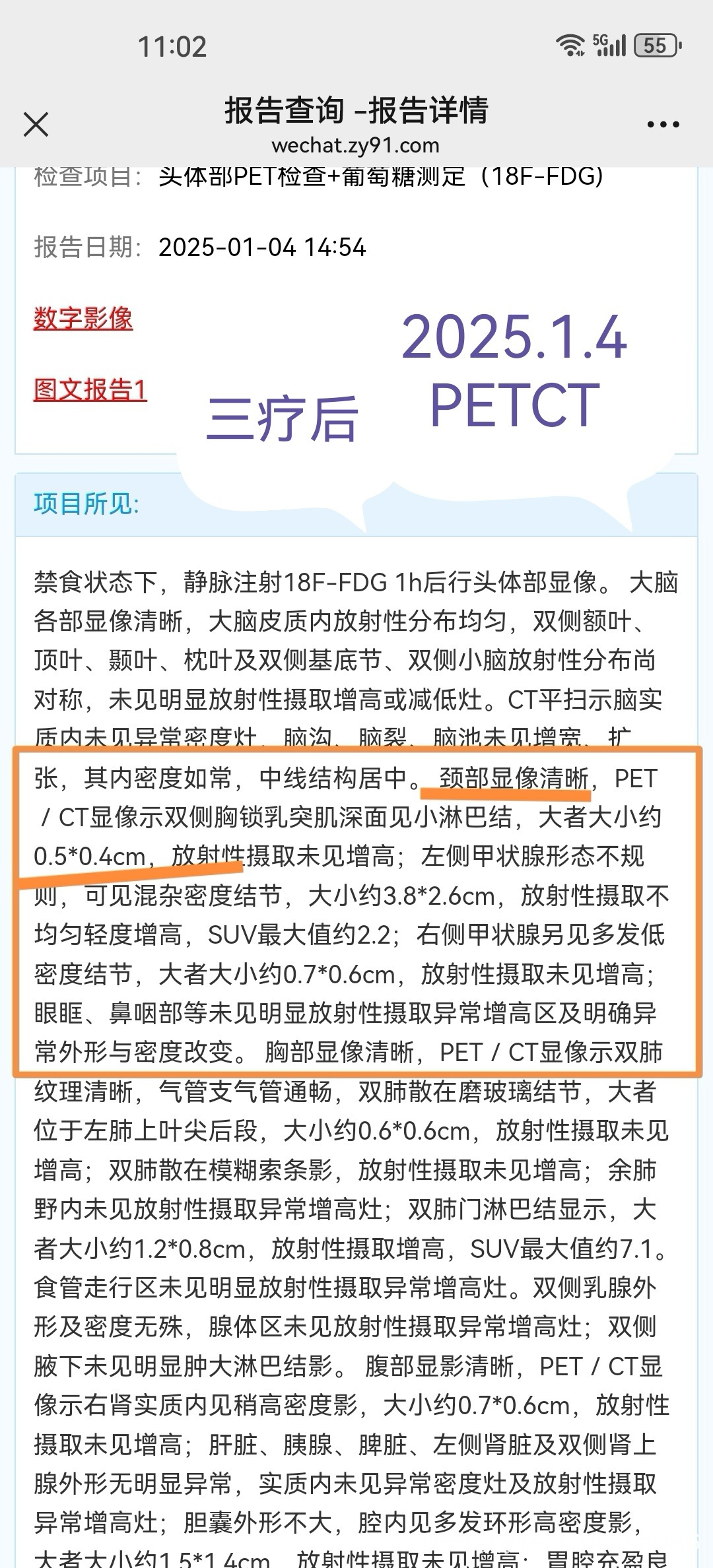 一疗后b超,颈部结巴结0.8cm,二疗,三疗后(2028.1.9)b超是2.0cm,三疗后PETCT(20251.4)却变成没有呢