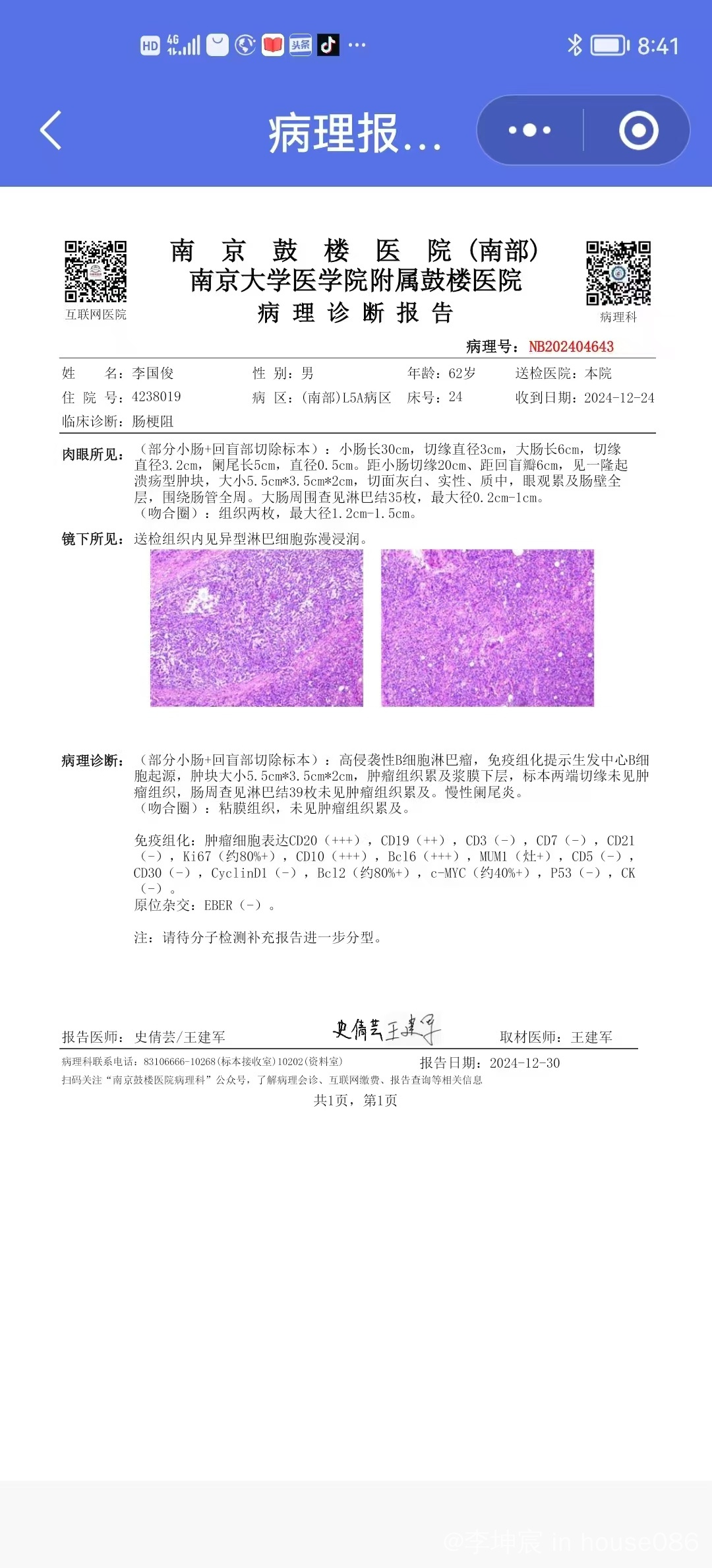 我家儿子也是肠淋巴瘤,己结疗一年多,抓紧时间治疗