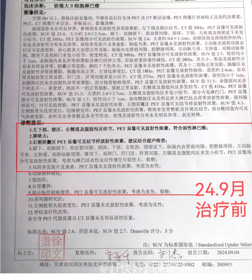 病人男70岁,2024.8月确诊弥漫大B细胞淋巴瘤,非生发中心亚型。3期。未进行ipi评分。