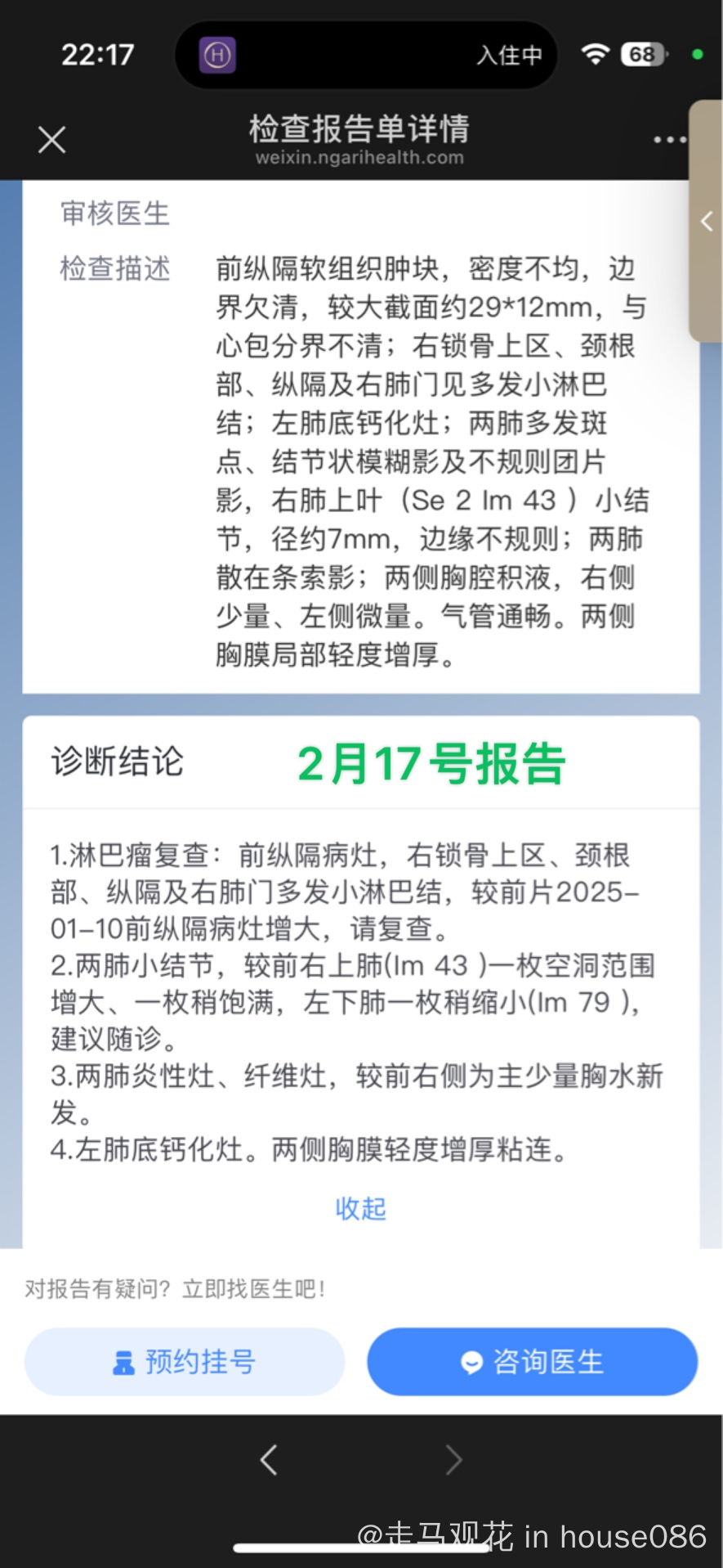 麻烦大神帮忙看看 为何移植不到一年又出现胸腔积液 并且前纵隔肿块