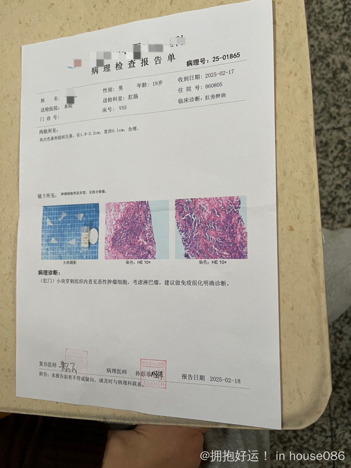 昨日做完穿刺,今日医生活检报告出来疑似淋巴瘤,但是硬肿块是长在肛门跟直肠处的,请问有没有懂的各位麻烦解答一下,谢谢