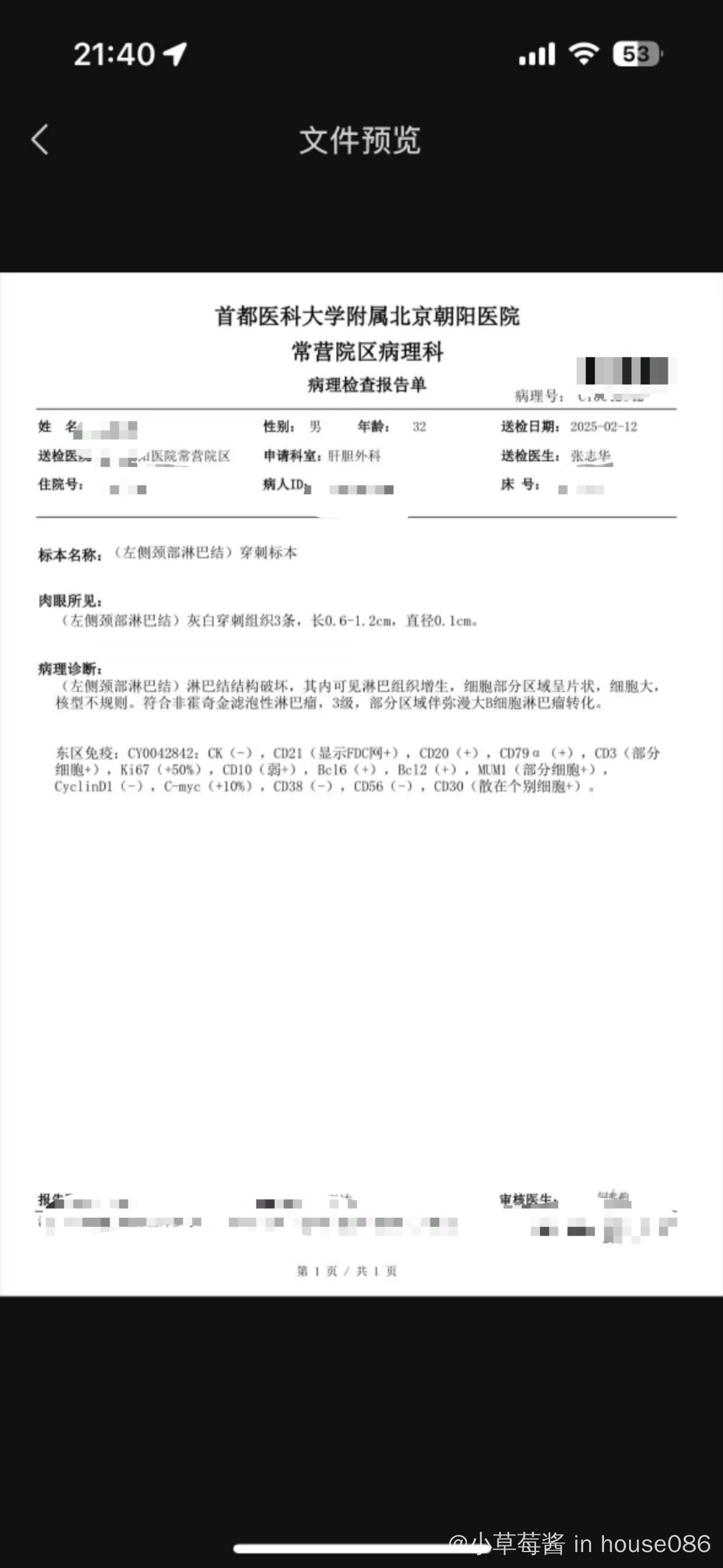 家里人本来长了个脾囊肿,因为本身免疫有问题。所以选择了穿刺,但穿刺时候拍ct发现了疑似淋巴瘤影像在脾门。然后脖子上也长出来了一个,之前是没有,再做这个脾囊肿住院期间生长的。其他地方没有。然后做了活检,晚上刚出结果,我看看都是3a,3b。我们这个报告只写了3级,求大家解答。不是很懂,另外好治疗吗,家里人本身吃激素,有大动脉炎。