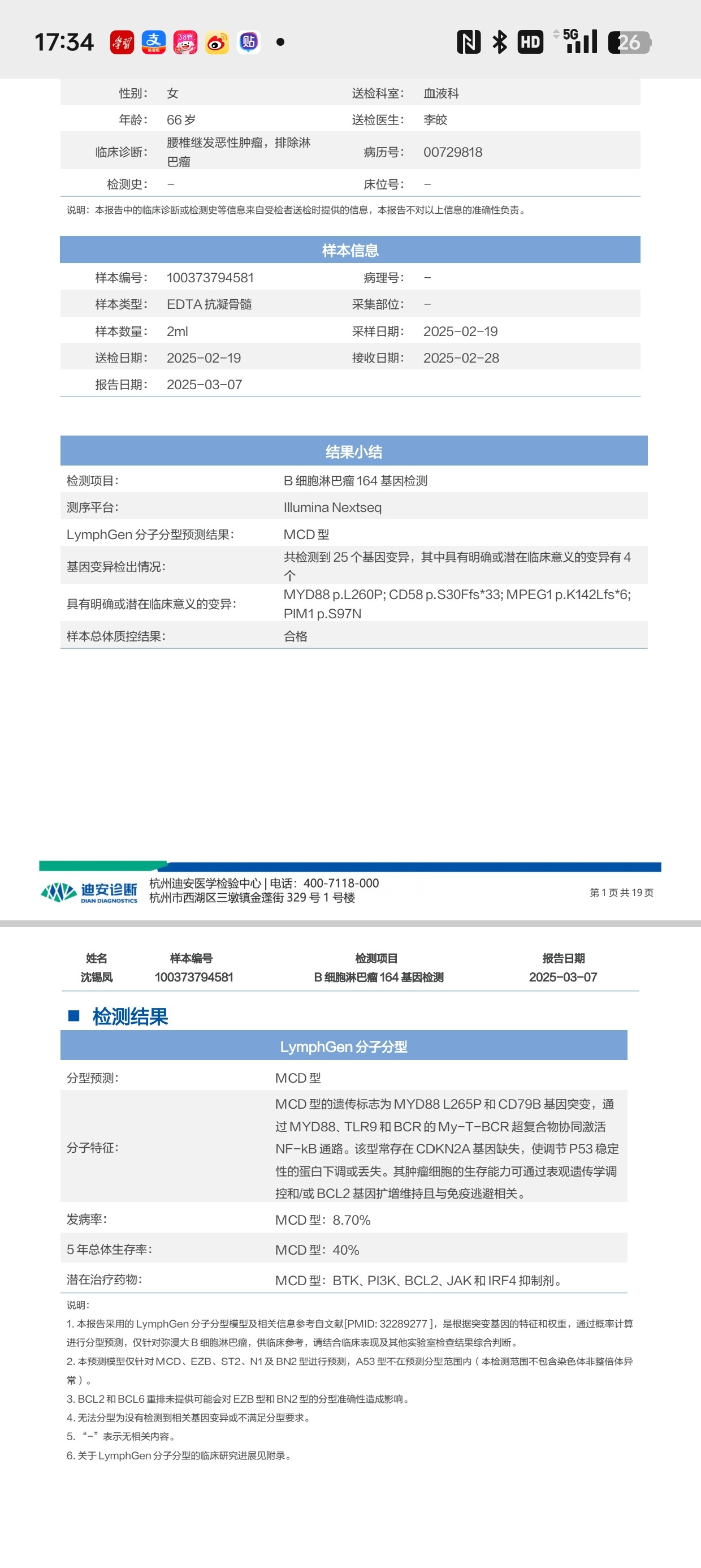 基因检测报告出来了,医生让我们买了泽布替尼,治疗方案是pola-r-chp,有大佬能帮忙看一下吗