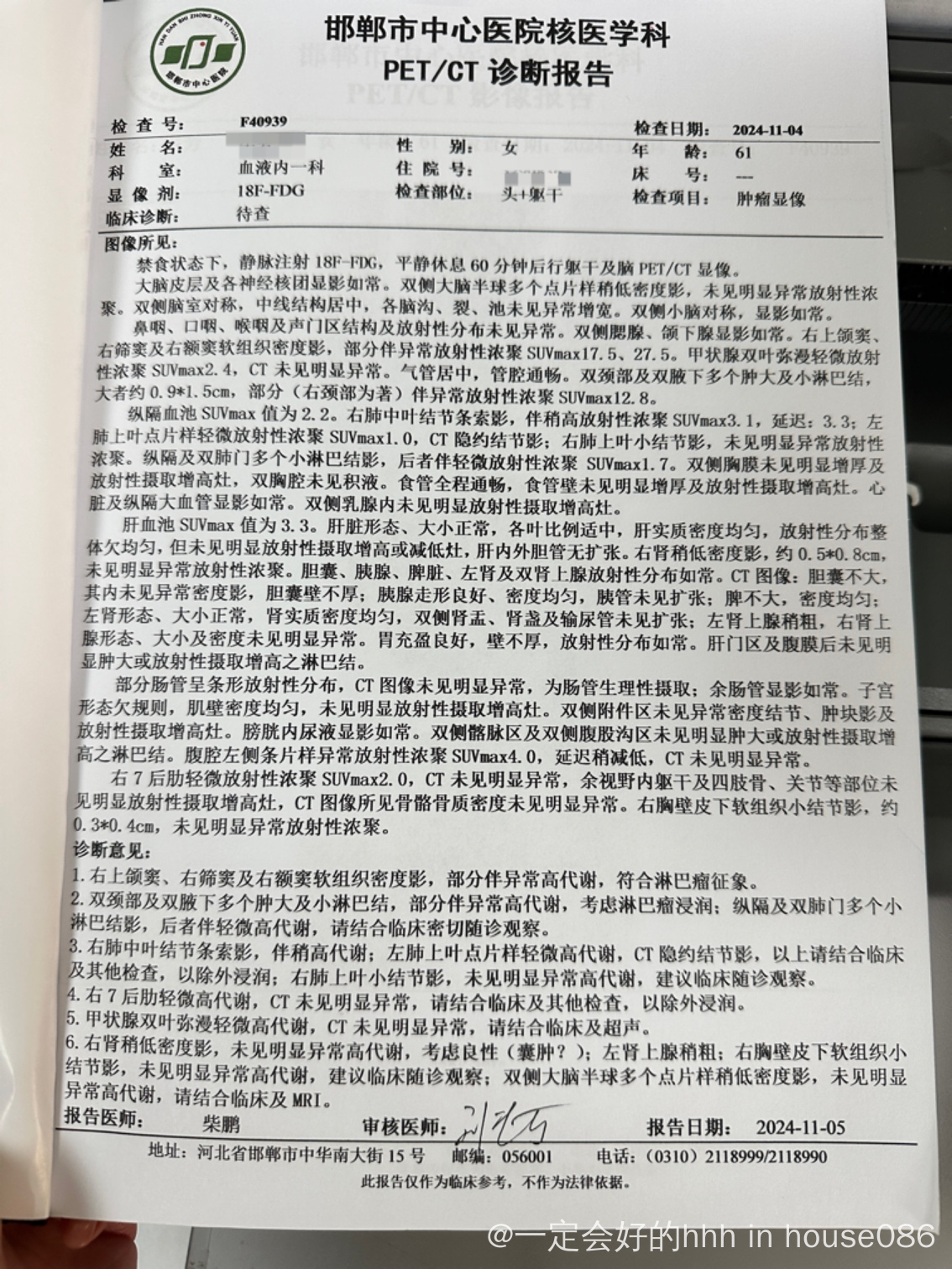 3.病人右侧筛窦,上颌窦,额窦原发,petct 显示未侵蚀中枢,但原发部位在头部,且治疗过程中病人一直眼部不适,突发耳鸣,查到资料说pet mr在头部检查更加精细!