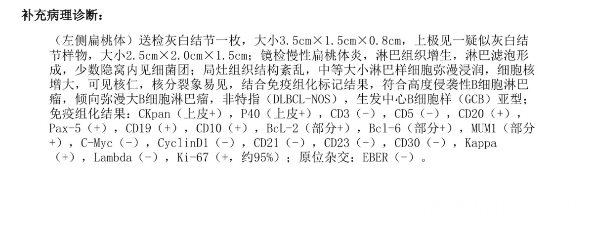 病理出来后,直接做了PET- CT显示仅双侧扁桃体有浸染,被确诊为弥漫大B一期A组(A组是什么意思呀?)IPI评分0分,低危,目前的治疗方案是R-CDOP。