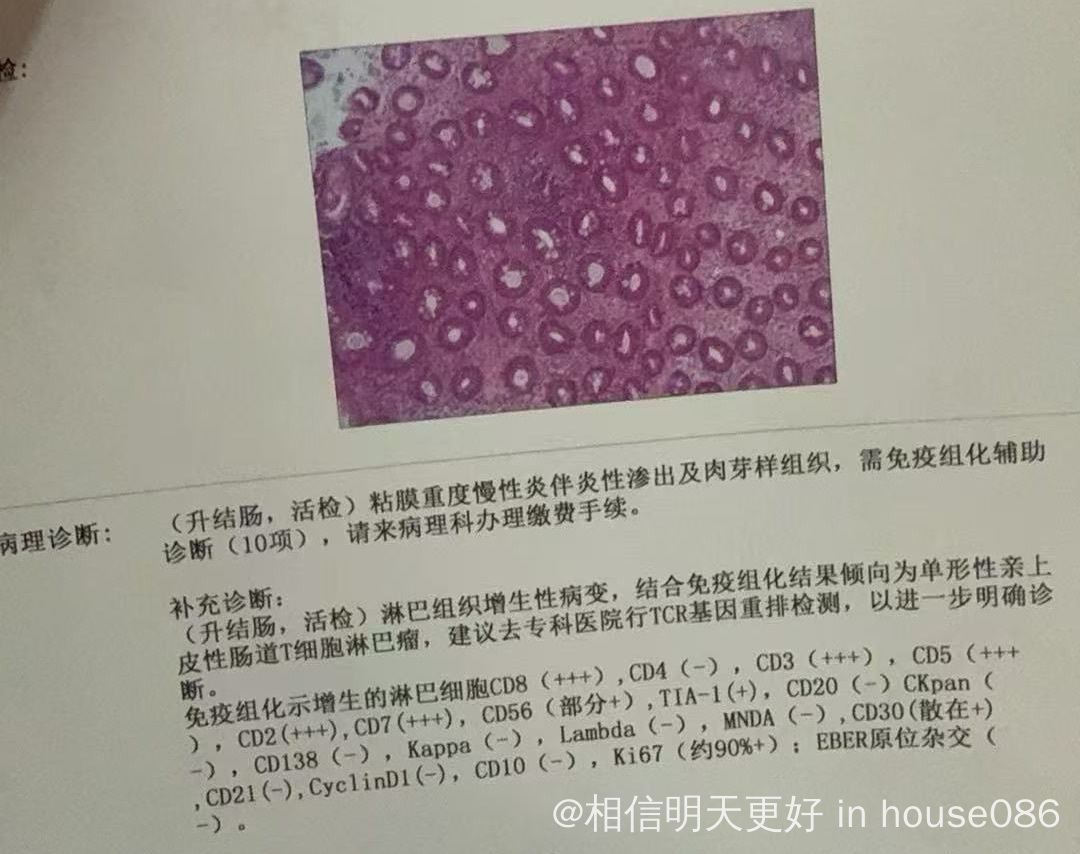 两周后情况好转出院,在院期间,同步做了肠镜,报告显示升结肠局部水肿及糜烂,遂移交昆山中医院进行进一步检测。