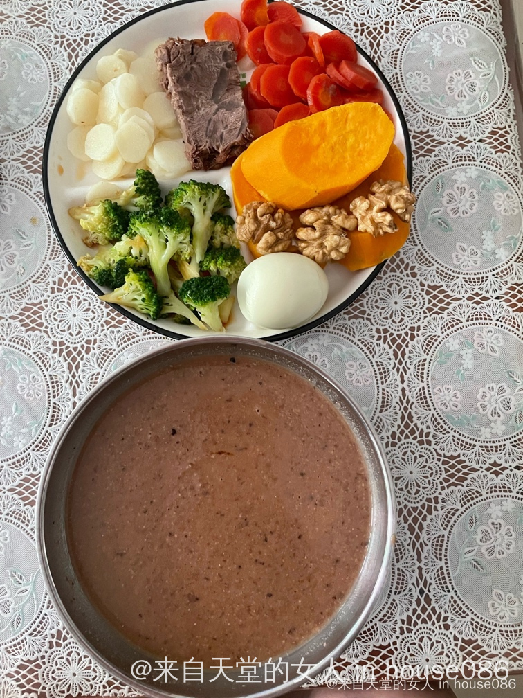 ▶️鸡蛋、酱牛肉、核桃仁、西兰花、水果胡萝卜、山药、红薯