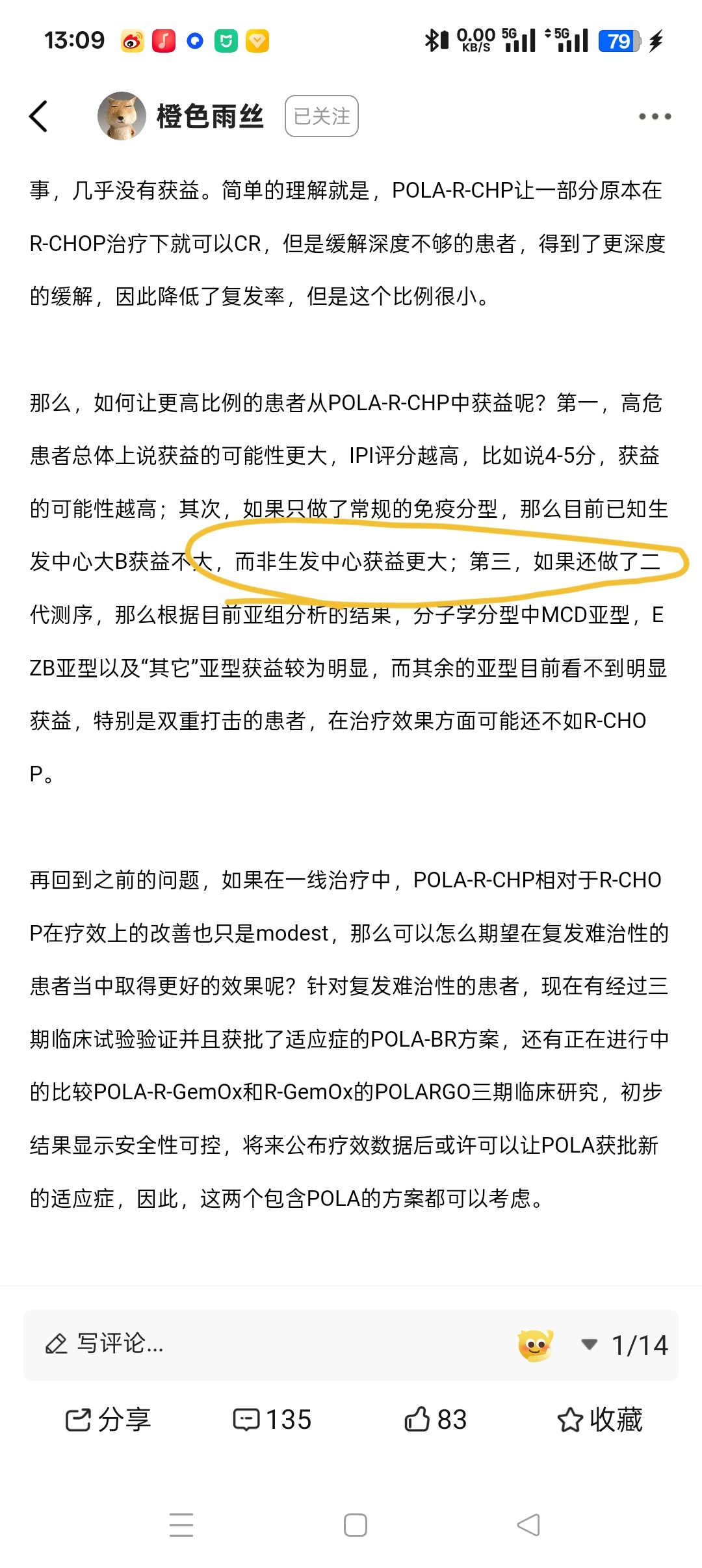 橙色雨丝 发表于 2025-10-18 07:36 早期患者,R-CHOP就可以了,移植或CAR-T都是复发难治患者的选项,不是一线治疗的选项,没有必要为了一个低危的疾病去冒二次肿瘤风险。