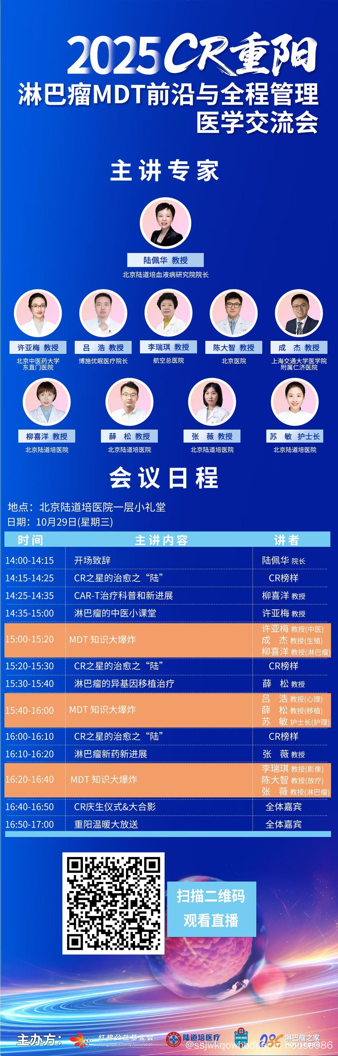 今日有幸参加了陆道培医院与淋巴瘤之家联合举办的“2025CR重阳淋巴瘤MDT前沿与全程管理医学交流会”,深感不虚此行。