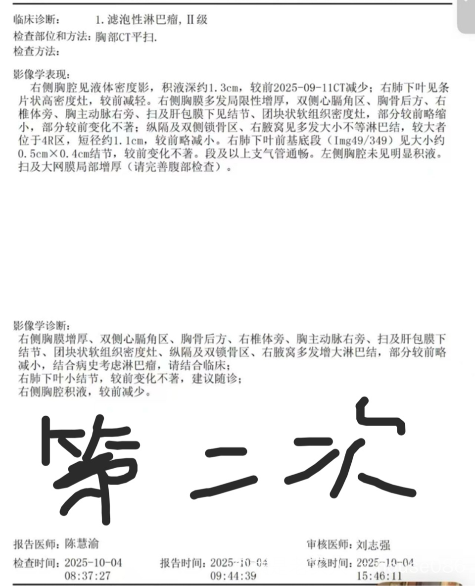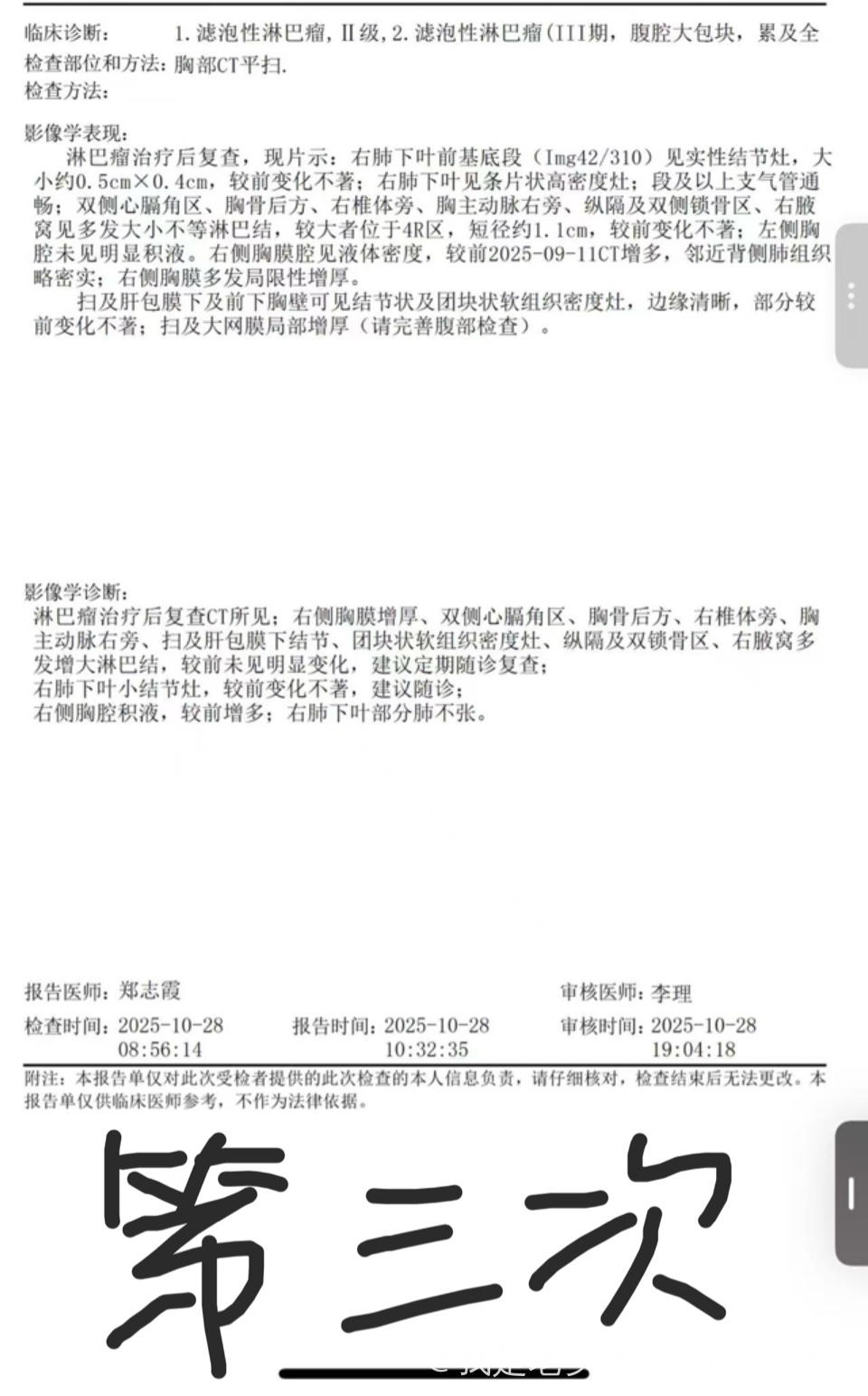 二、疾病诊断:滤泡性2级淋巴瘤(III期,腹腔大包块,累及全身淋巴结)