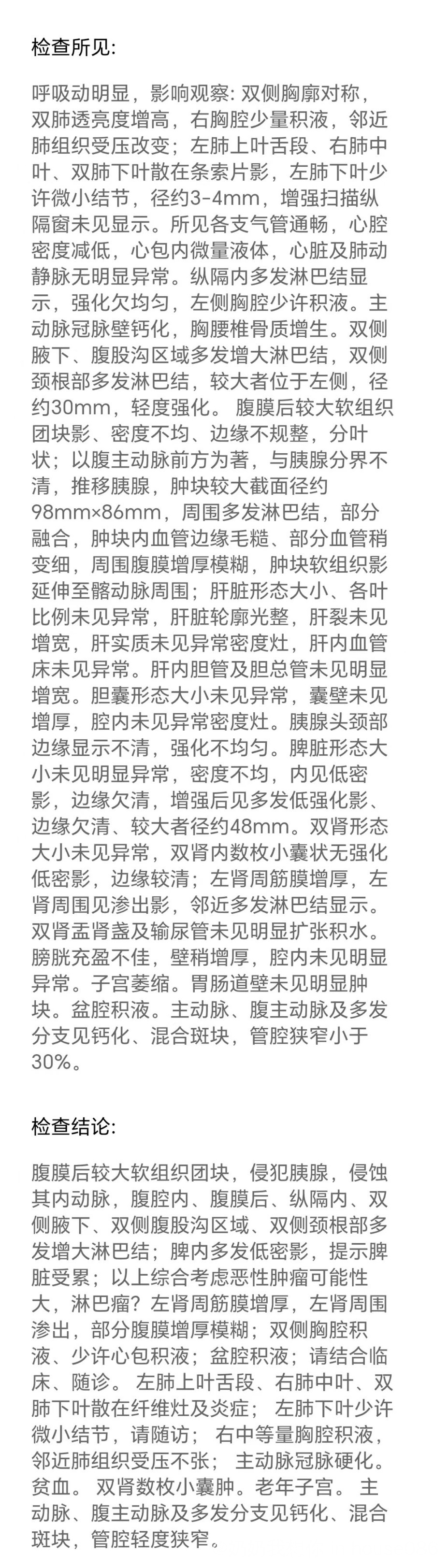 朋友们好,我奶奶七十三岁了,最近一直不舒服去医院照了增强C T得出来的检查结果,奶奶有基础病,三高胃炎胃病心脏也不是很好等等。目前只检查到这一步,医生说八九不离十是恶性肿瘤,但没有做进一步活检了,因为我家庭条件很差,父母闻瘤色变,不管哪种瘤她们都认为没有希望了,觉得没必要再做进一步检查,确认到底是哪一类型的淋巴瘤。也没想过多跑几个医院结合一下多个专家的意见。他们直接放弃了进一步检查和治疗。亲戚也都说老人肯定挺不过化疗之类的。医生也没开药就把老人接回来了,我也在网上查询了很多关于这种病的信息,这似乎是癌症里面比较希望治疗的一种,但父母没文化也什么都不懂,我也模棱两可目前。他们说最多只能凑出十多万来治疗奶奶,我想问一下如果做了化疗之类的 ,奶奶的寿命还能再维持几年吗,又或者说,能有稍微好点的生存质量吗,医生说如果不做治疗奶奶最多只能活到过年,我怕她后期在家里会经历很多痛苦如果不治疗。我也不知道怎么办了,只好来向大家求助一下。