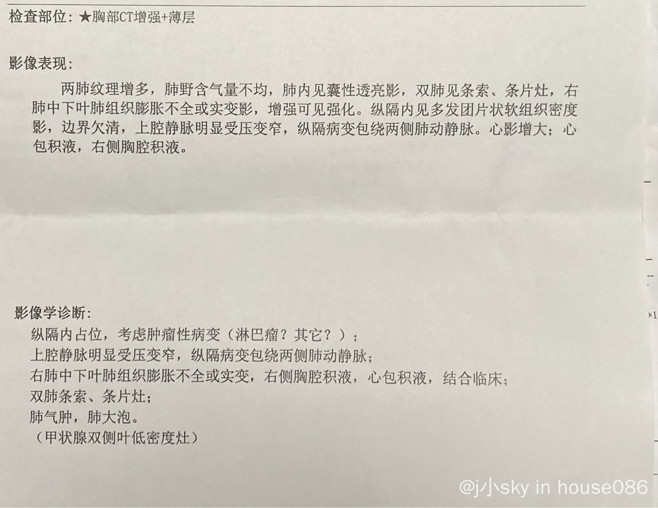 医生因为纵隔内占位,判断大概率是淋巴瘤