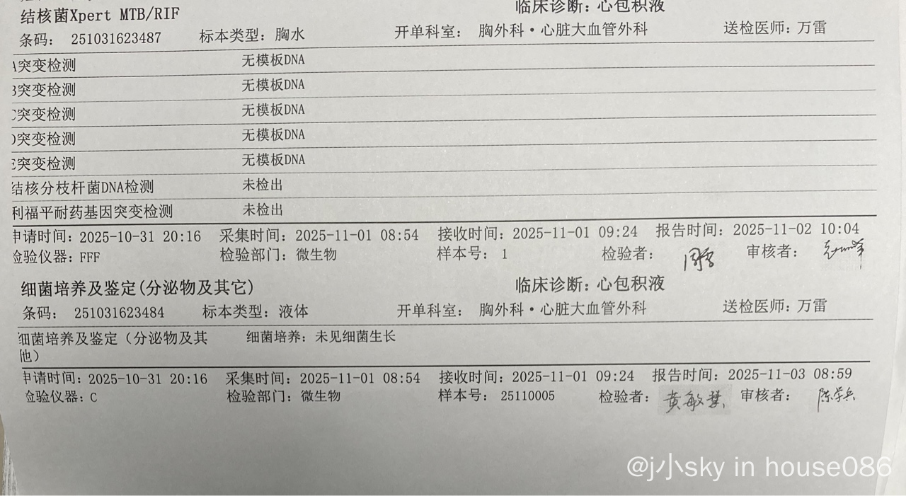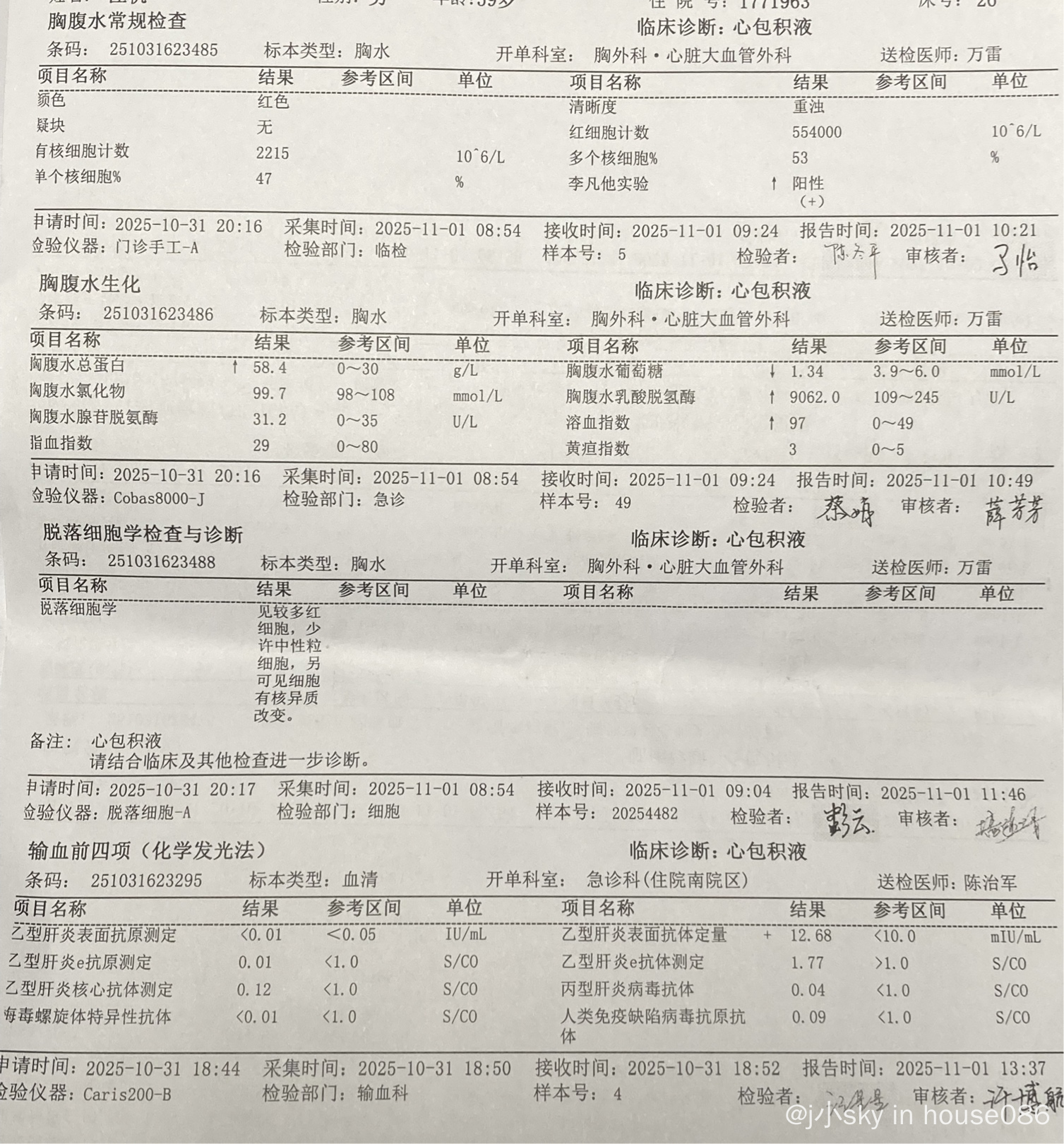 当天救护车转入市级中心医院,24小时心包积液排除1800ml左右