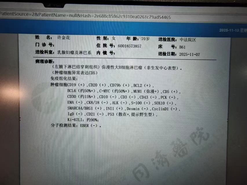 请问你父亲的分型是什么 我们的分型是非生发弥漫大B CD5阳性 基因检测结果还没出来