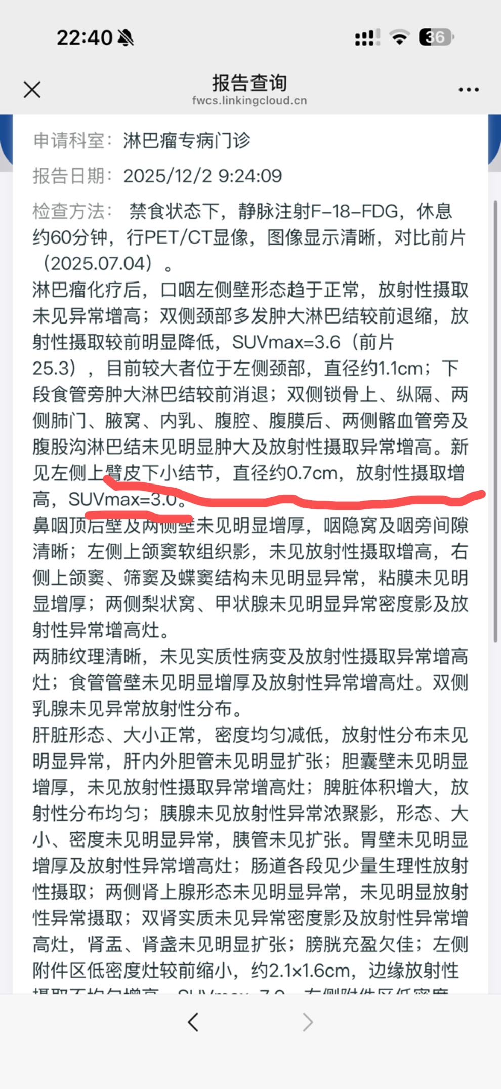 感谢大神回复心里一下子安心多了,就是还有个疑问,麻烦大神在帮我看下,就是我的病灶suv值是3.6,略高于 ...