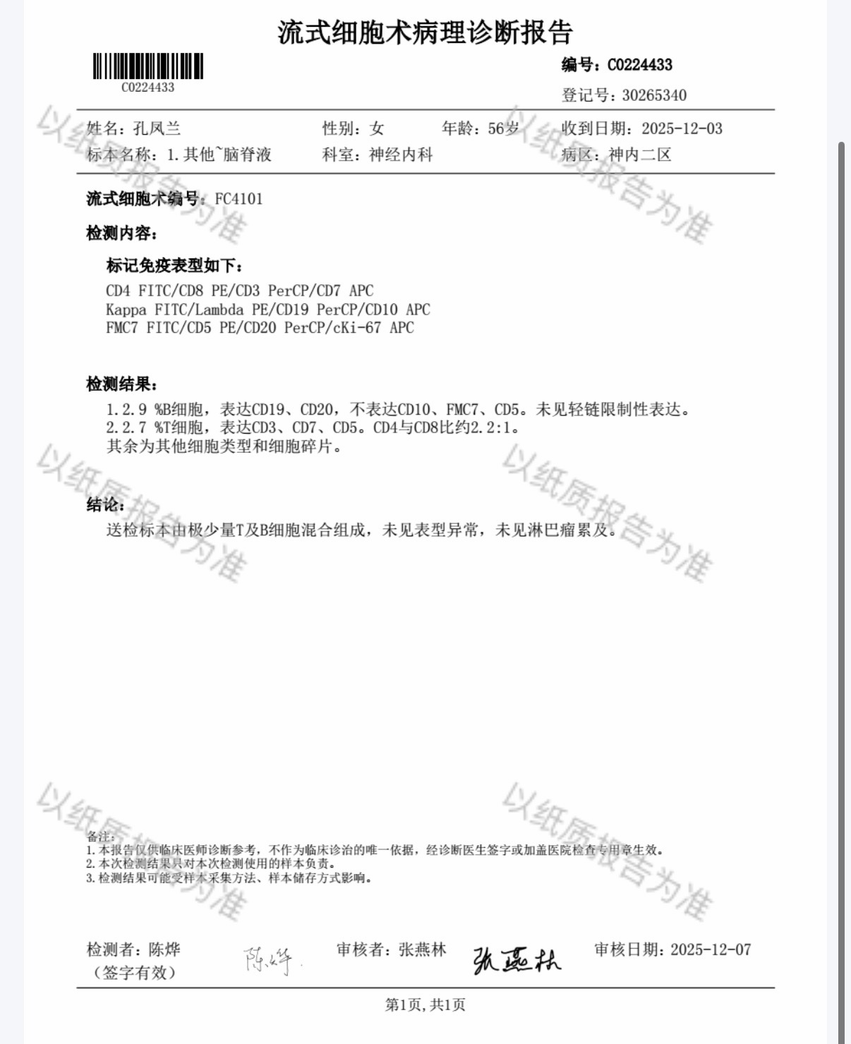 橙色雨丝 发表于 2025-12-14 08:11 脑脊液检查未获得疾病复发证据,目前知道有问题,但问题是什么还不确定。骨髓检查做了吗?