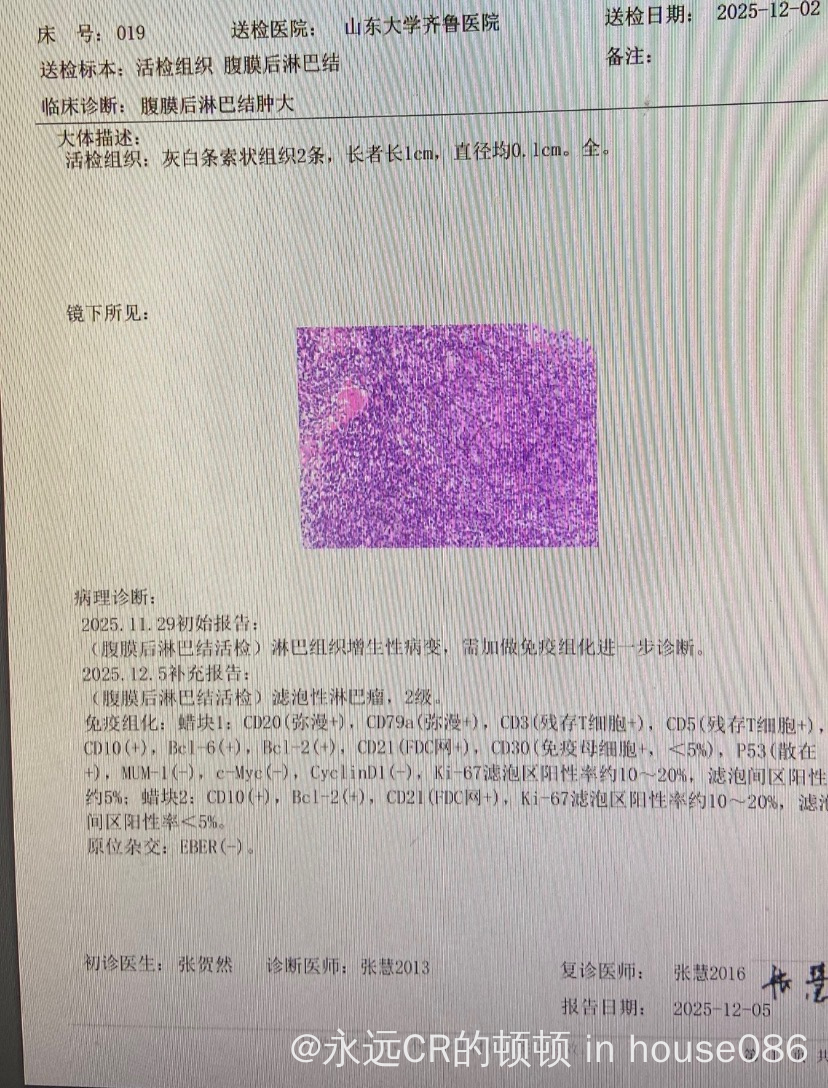 余生坦途 发表于 2025-12-15 19:40 滤泡是惰性的,没到治疗指针观察为主