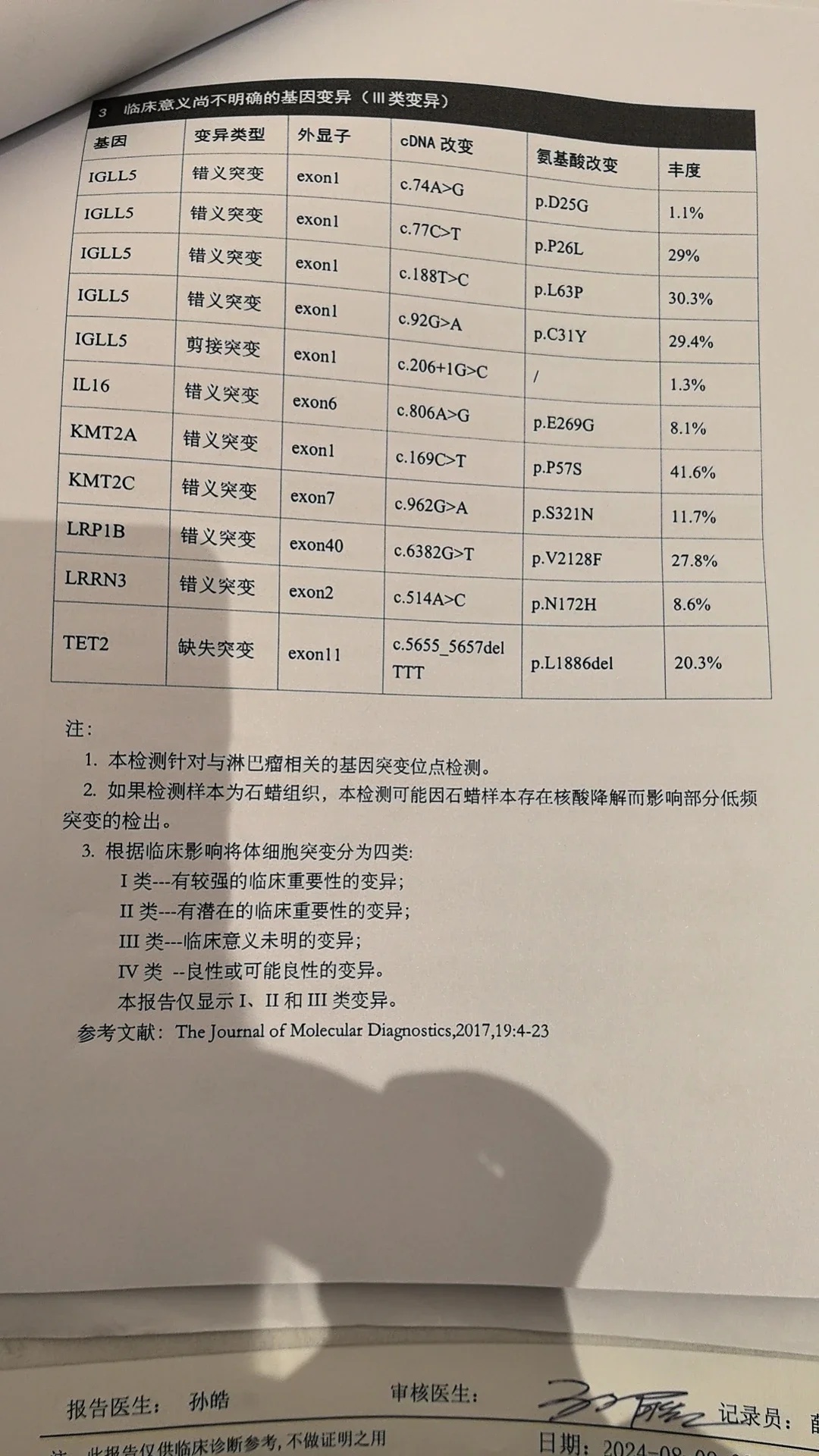 1)应该已经排除了儿童型滤泡的可能性,原因是儿童型滤泡是结内疾病,不应该发生在甲状腺这样的结外器官,并且也很少有KMT2D和HIST1H1C这类与组蛋白修饰相关的基因的突变;2)由于存在桥本氏病,Ki67和SUVmax恐怕都不能准确反映淋巴瘤本身的侵袭性,所以不作为治疗方案选择的主要考虑因素;3)由于年龄很小,放化疗都会带来不可逆转的毒性,所以,可以先试一试利妥昔单抗单药的治疗,如果缓解情况好,后续可以考虑低剂量放疗的巩固,如果缓解情况不好,考虑到有比较罕见并且意义不明的BRAF突变,R-CHOP或者G-CHOP化疗应该是不能避免了。 |